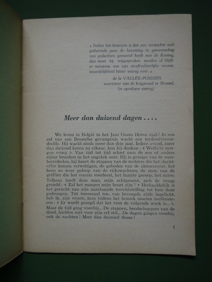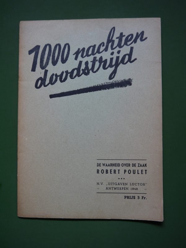 Un petit fascicule réalisé par l’épouse de Robert Poulet pendant sa détention et les longs mois suivant sa condamnation à mort pour collaboration… Le verdict ne fut finalement pas exécuté, Poulet étant plutôt condamné à l’exil.