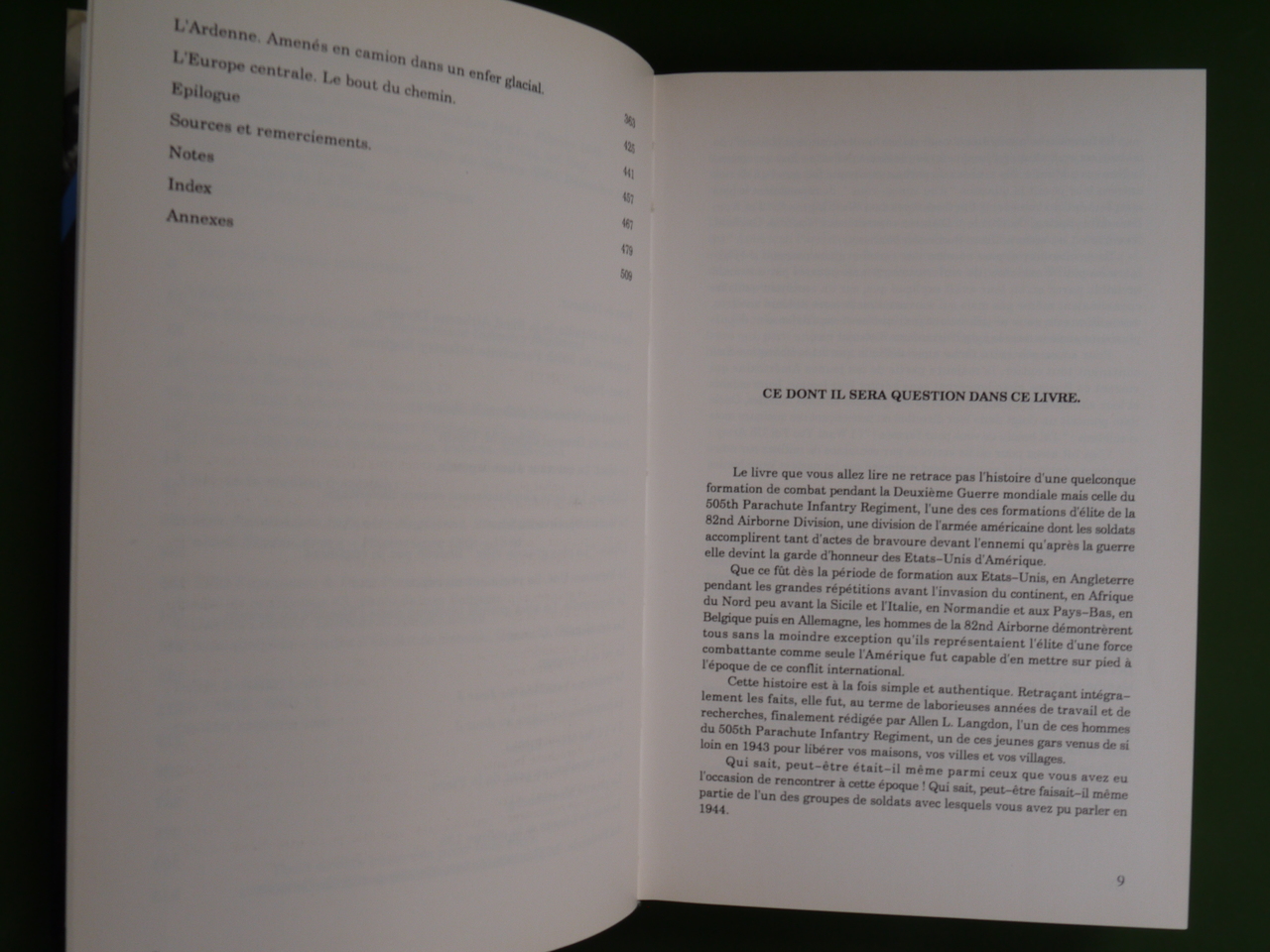 « Que ce fût dès la période de formation aux Etats-Unis, en Angleterre pendant les grandes répétitions avant l’invasion du continent, en Afrique du Nord peu avant la Sicile et l’Italie, en Normandie et aux Pays-Bas, en Belgique puis en Allemagne, les hommes de la 82nd Airborne démontrèrent tous sans la moindre exception qu’ils représentaient l’élite d’une force combattante… »