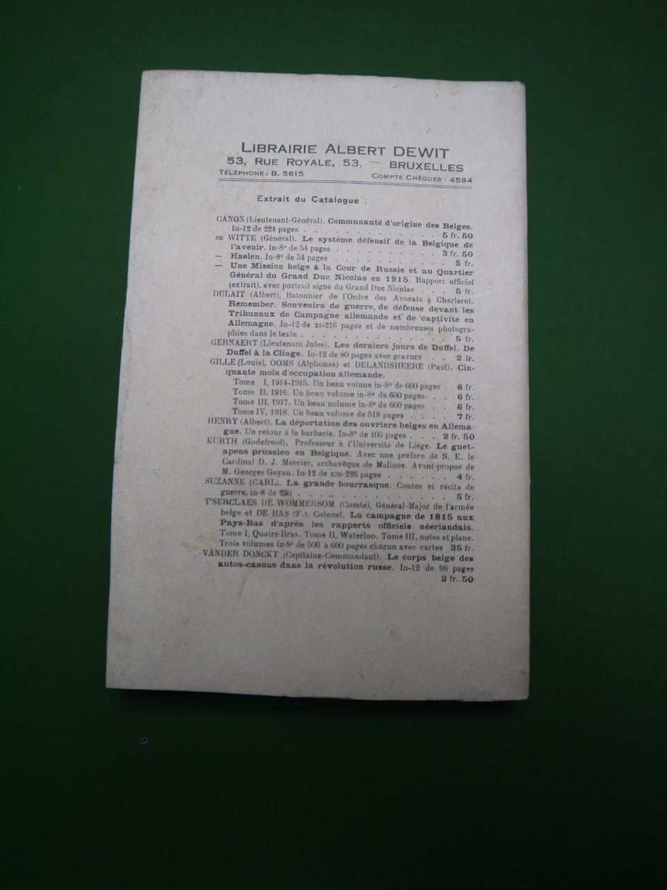 Souvenirs du temps de la première guerre mondiale par l’auteur de ce roman.