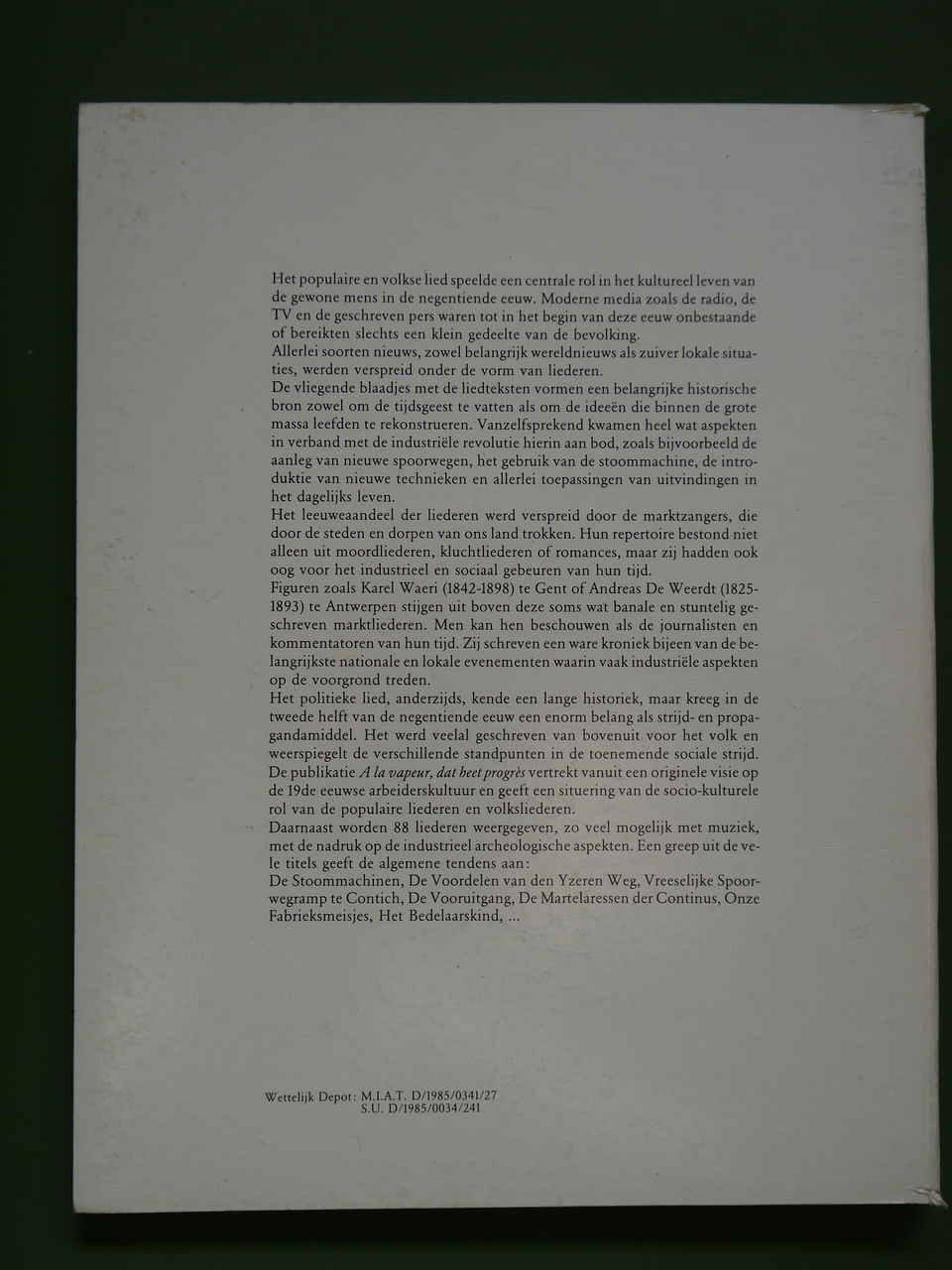 Sous-titre: « Liederen van de industriële revolutie », soit « Cha,nts de la révolution industrielle ».