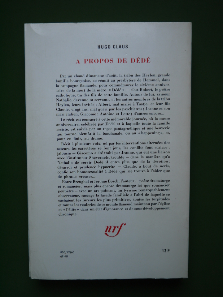Soyez le premier à laisser votre avis sur “A propos de Dédé, Hugo Claus, Gallimard, 1969”