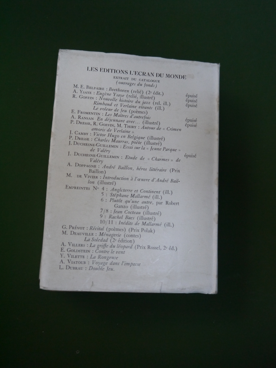 Le protégé d’André Breton évoque ses souvenirs sur Breton bien sûr, mais aussi Salvador Dali, Antonin Artaud et d’autres affiliés du mouvement surréaliste. L’Ecran du monde était une maison d’édition bruxelloise.