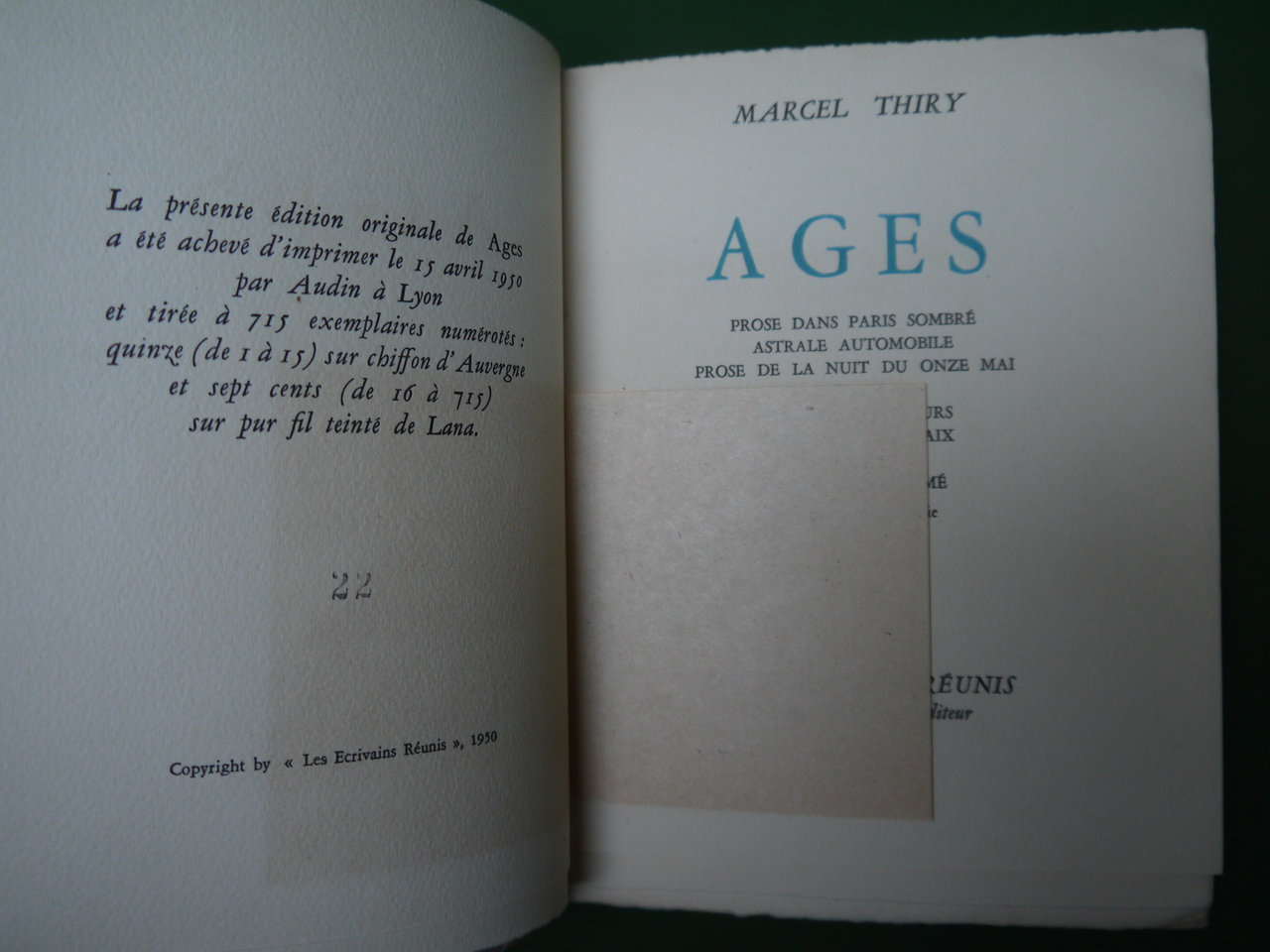 Armand Henneuse dirigeait cette enseigne. Au menu: « Astrale automobile », « Le poème innomé », « Prose de la nuit du onze mai »… Tirage à 715 exemplaires, avec envoi de l’auteur.