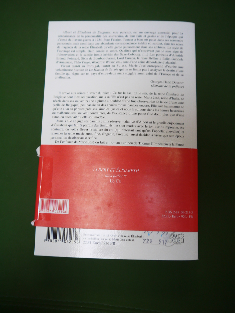Souvenirs d’enfance de la future reine d’Italie. Il est naturellement beaucoup question de la Grande Guerre. Réédition d’un titre paru chez Plon en 1971. Exemplaire en état neuf.