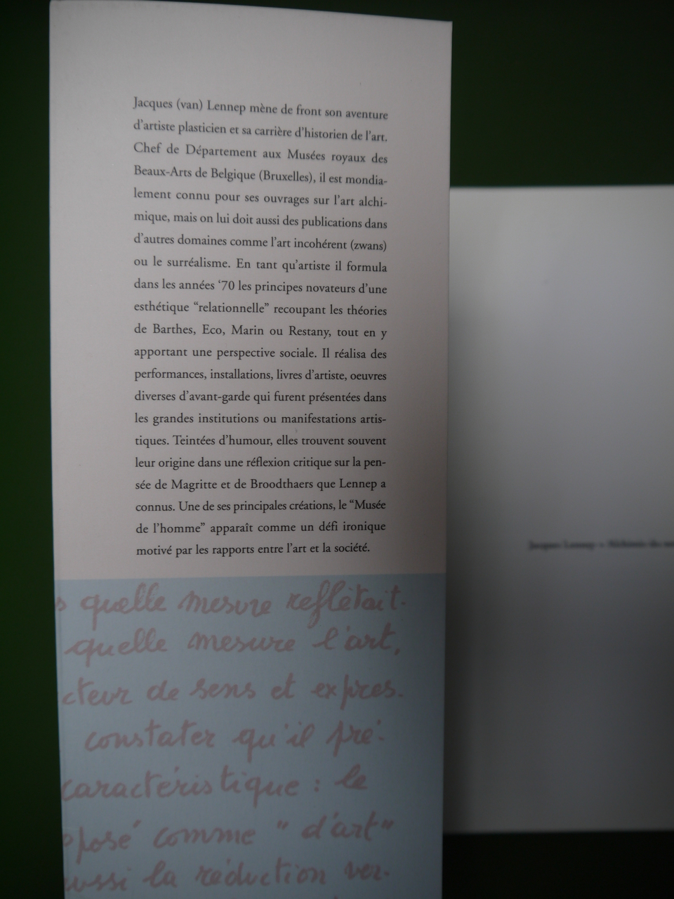 (Van) Lennep est à la fois plasticien, historien d’art et auteur d’ouvrages de référence sur l’alchimie.