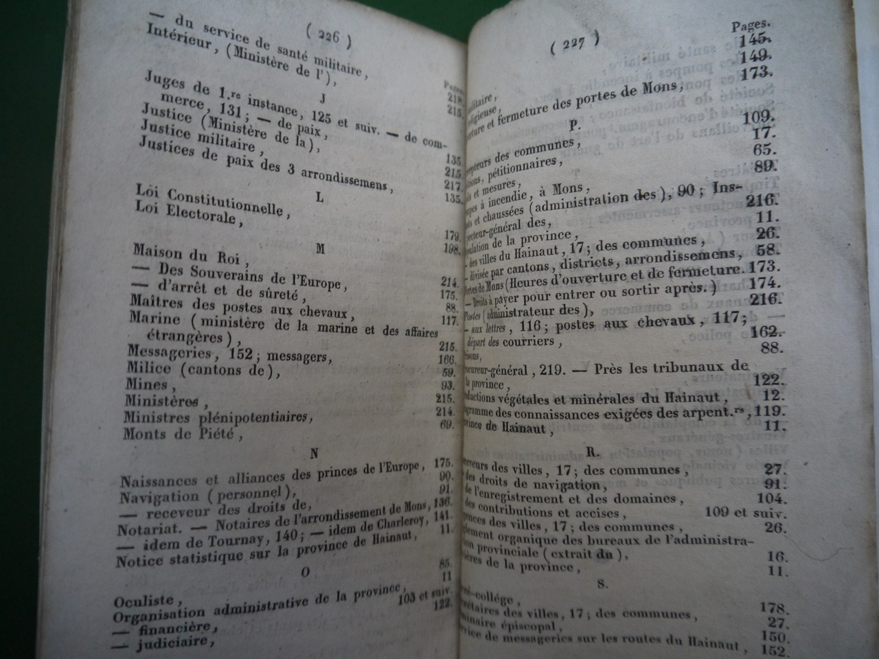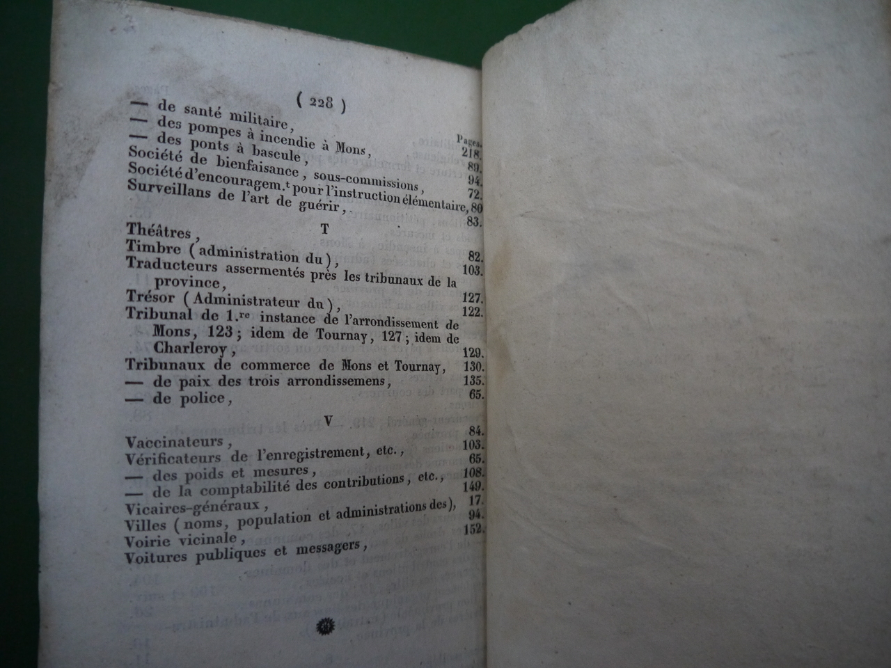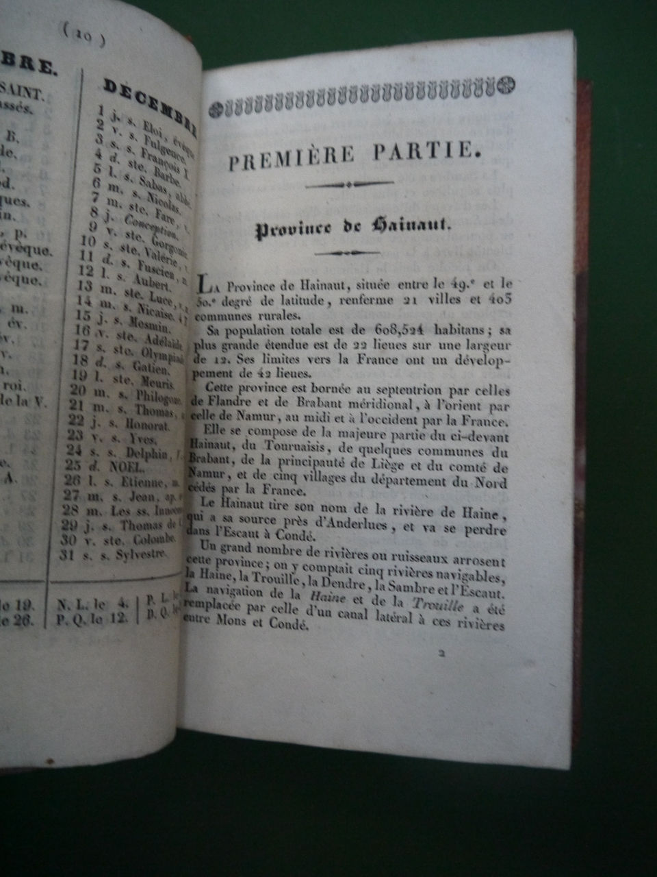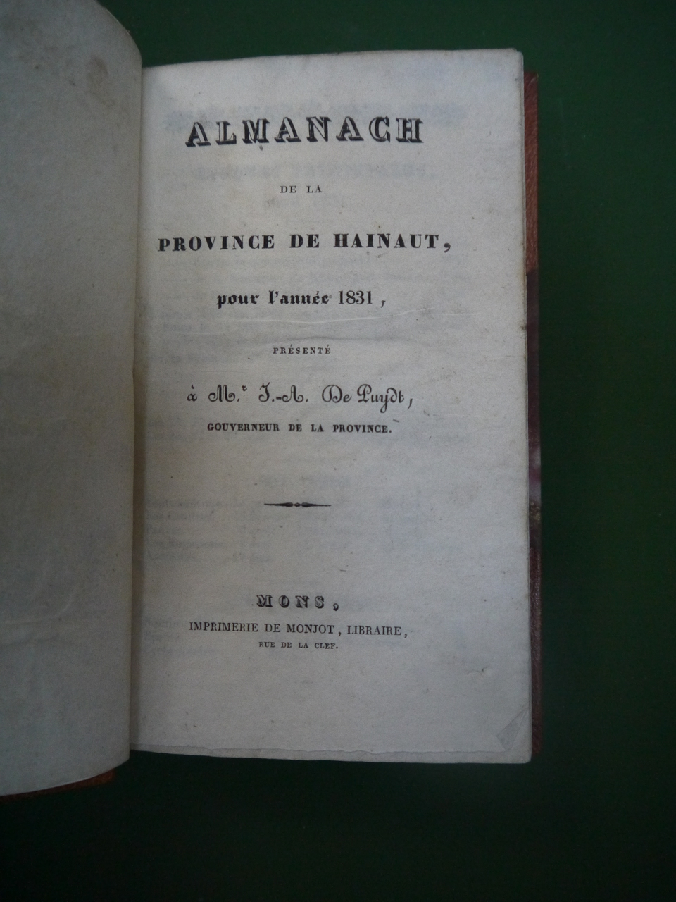 « Présenté à Mr J.-A. De Puydt, gouverneur de la province ». On trouve la liste des vaccinateurs en page 84, celle des éclipses en page 4, et celle des deligences en page 152…