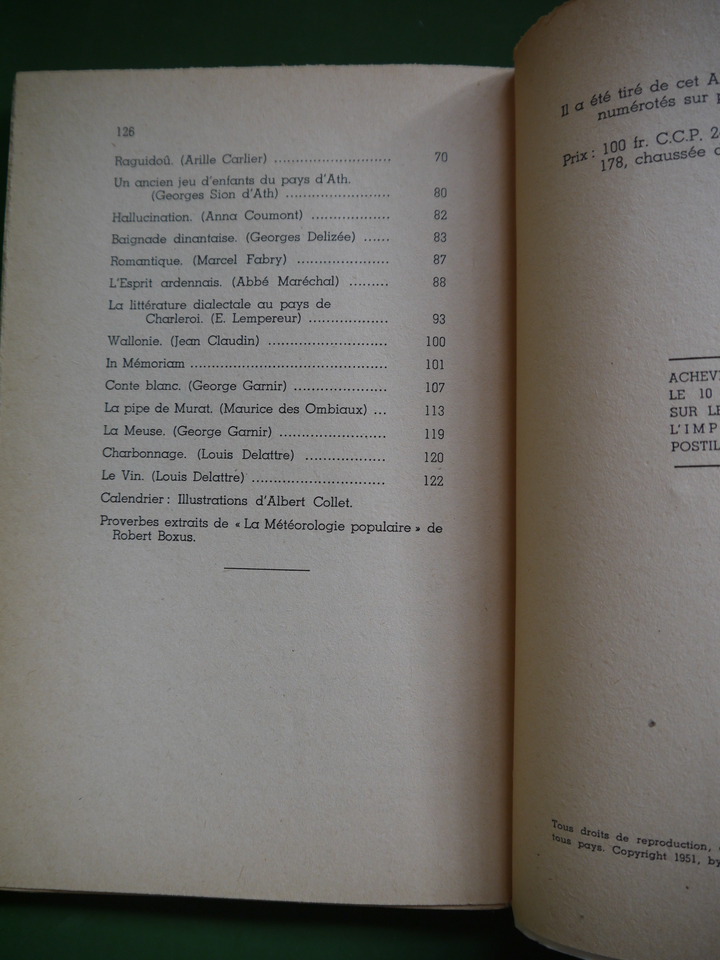Un almanach « littéraire et artistique » dont l’éditeur était basé à Lessines. Au nombre des auteurs: Georges Linzet, Louis Delattre, Abel Lurkin…
