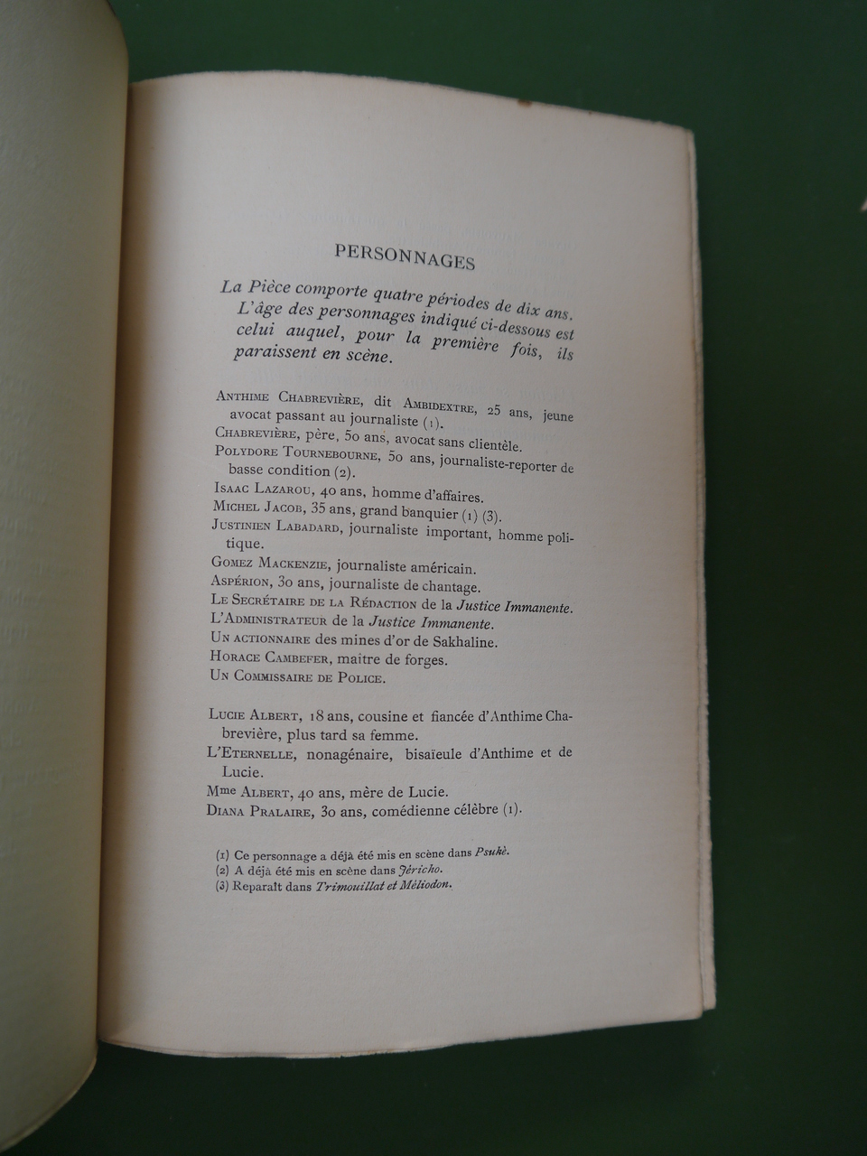 « Comédie-drame en cinq époques et XLIV scènes ». Exemplaires de la deuxième édition. Chronique de ce texte ici.