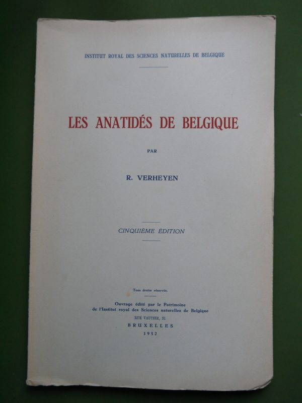 Les anatidés de Belgique, René Verheyen, Institut royal des sciences naturelles de Belgique, 1952
