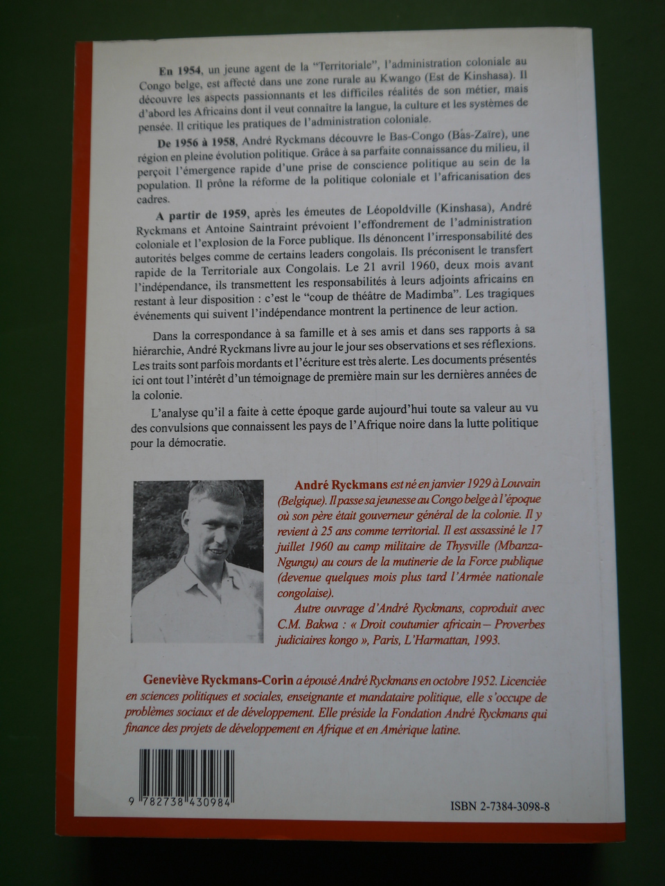 « Lettres et documents 1954-1960 ». Le fils de l’ancien Gouverneur du Congo fut tué lors de la mutinerie de la Force publique en 1960.