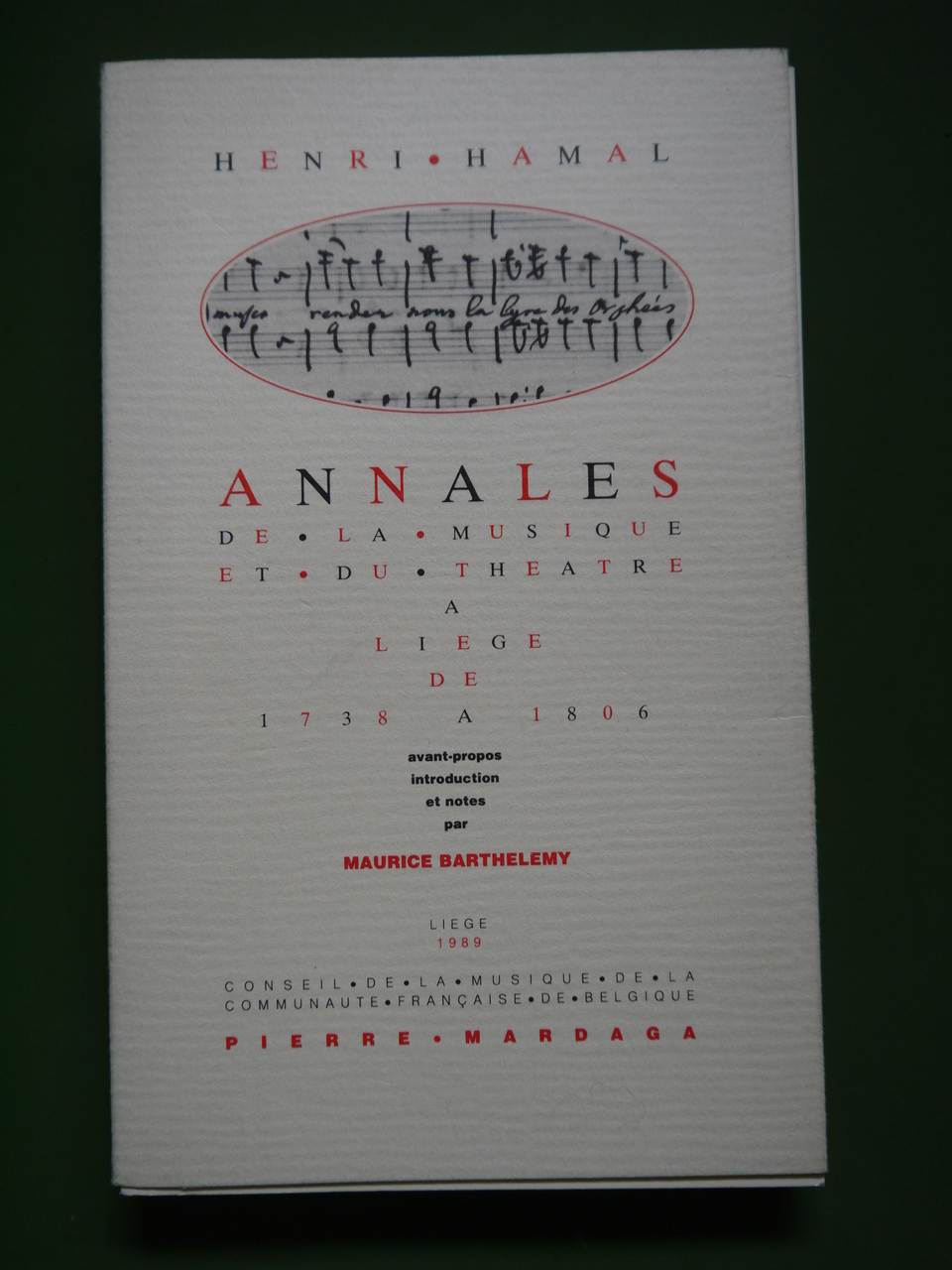 Annales de la musique et du théâtre à Liège de 1738 à 1806, Henri Hamal, Mardaga, 1989