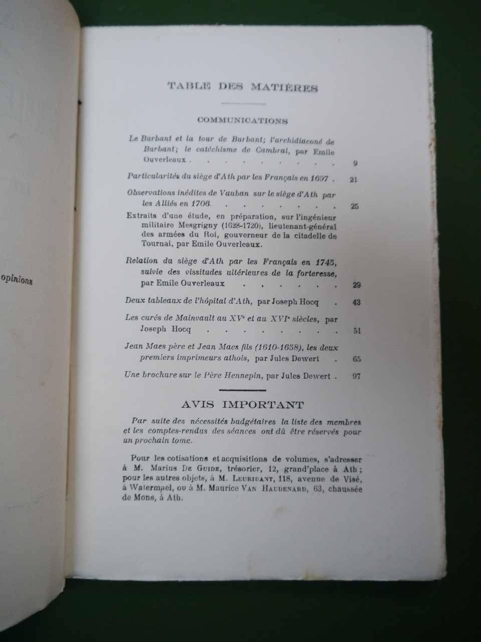 La plupart des communications ont trait à Ath. Exemplaire en état moyen.
