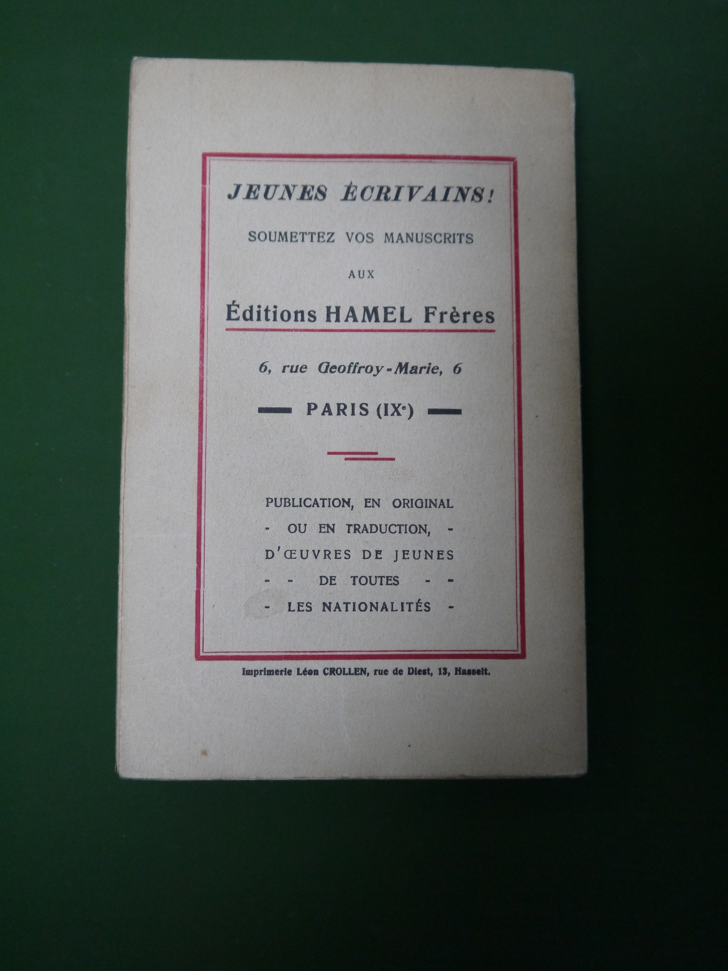 Préface de Hubert Krains. Poésie, théâtre et prose de 40 auteurs, dont Maurice Carême, René Meurant, Paul Pollet, Berland…