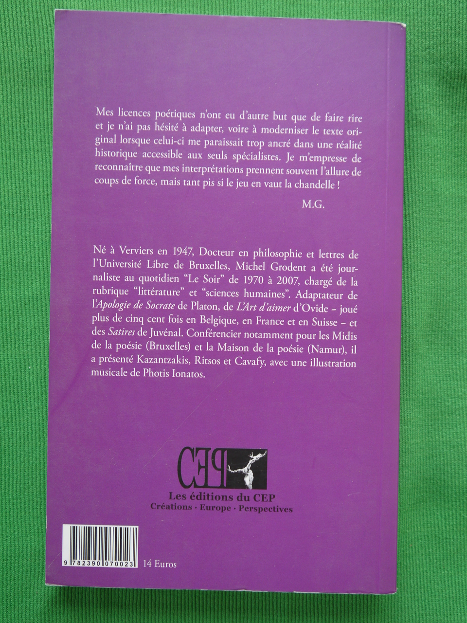 Traduction (parfois à la hussarde, prévient l’auteur, un ancien journaliste au Soir) de textes érotiques grecs et latins.