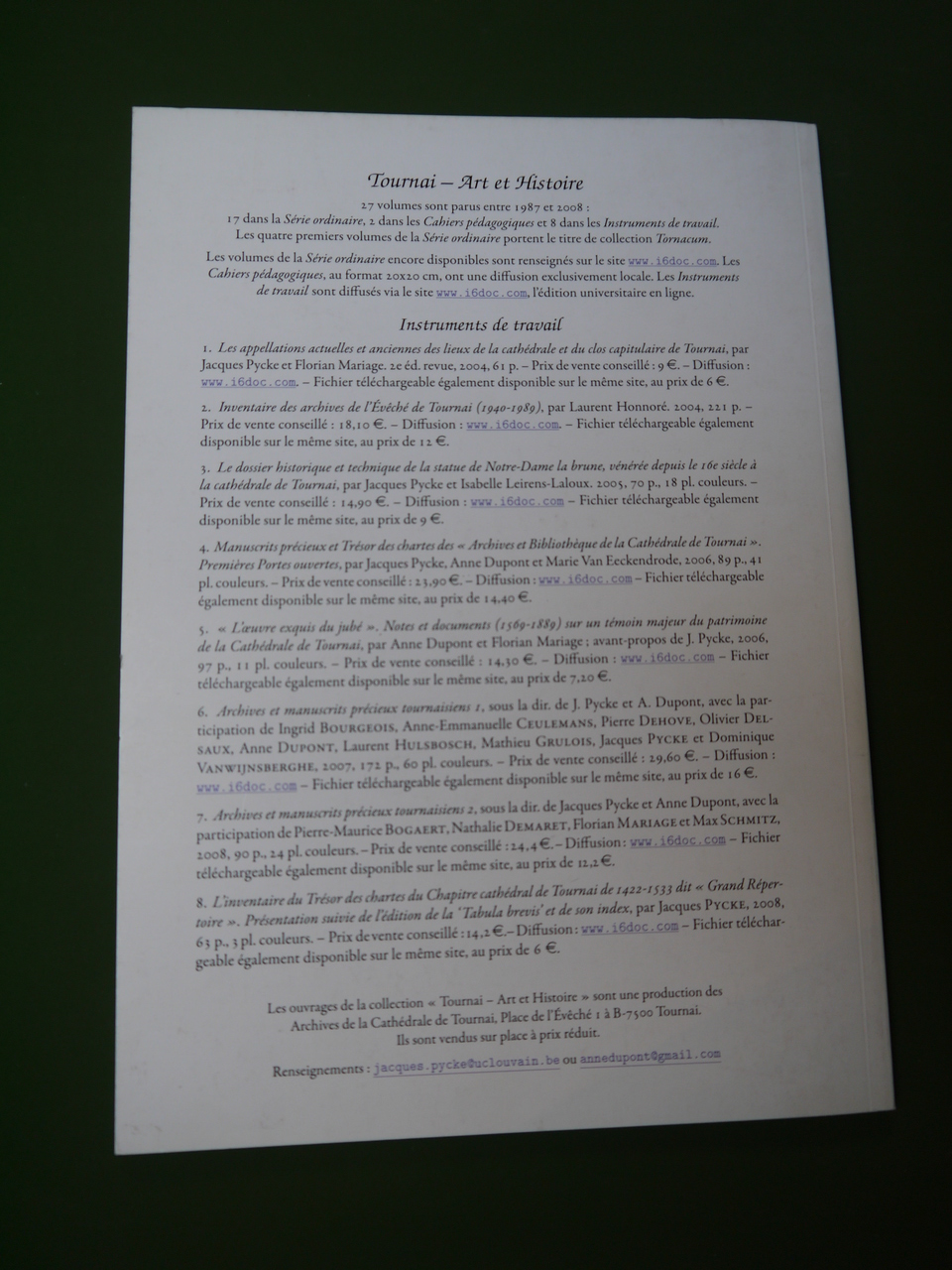 « Tournai art et histoire – Instruments de travail n° 7 ».