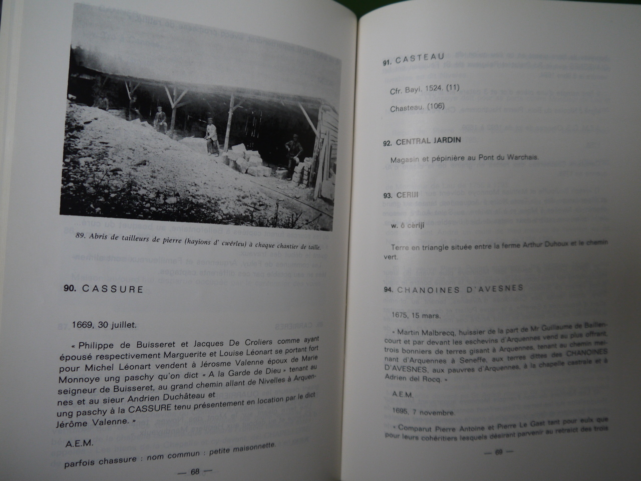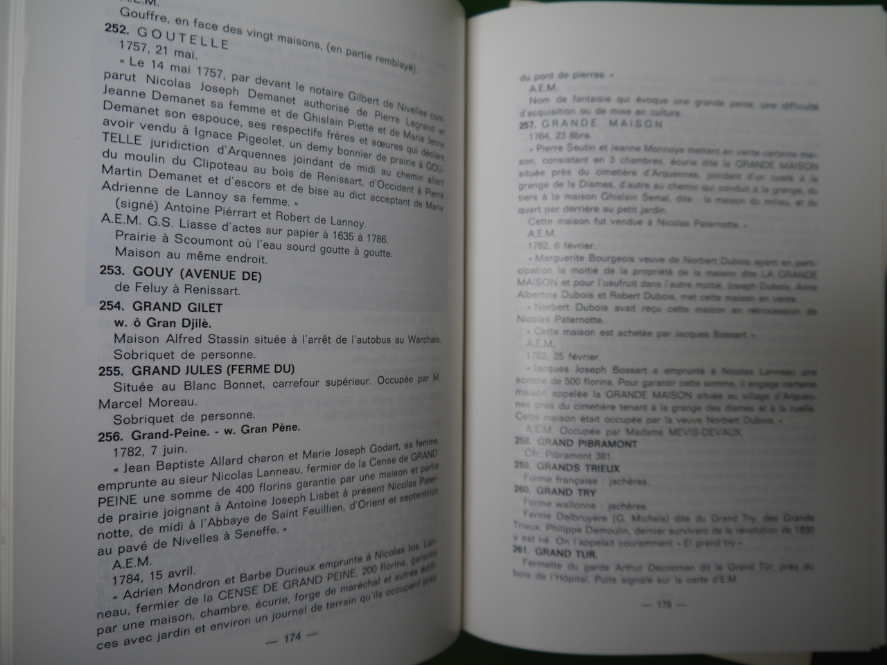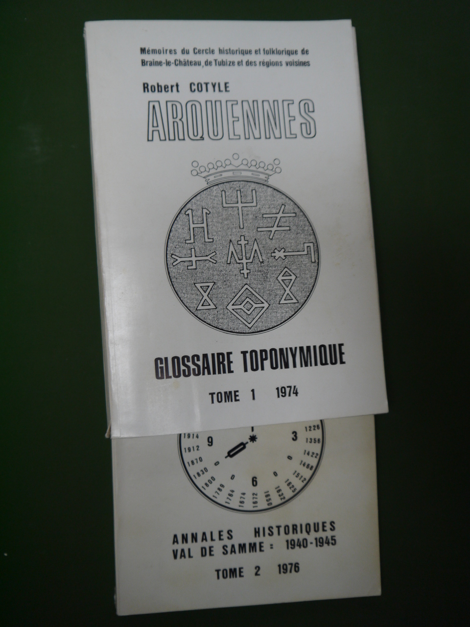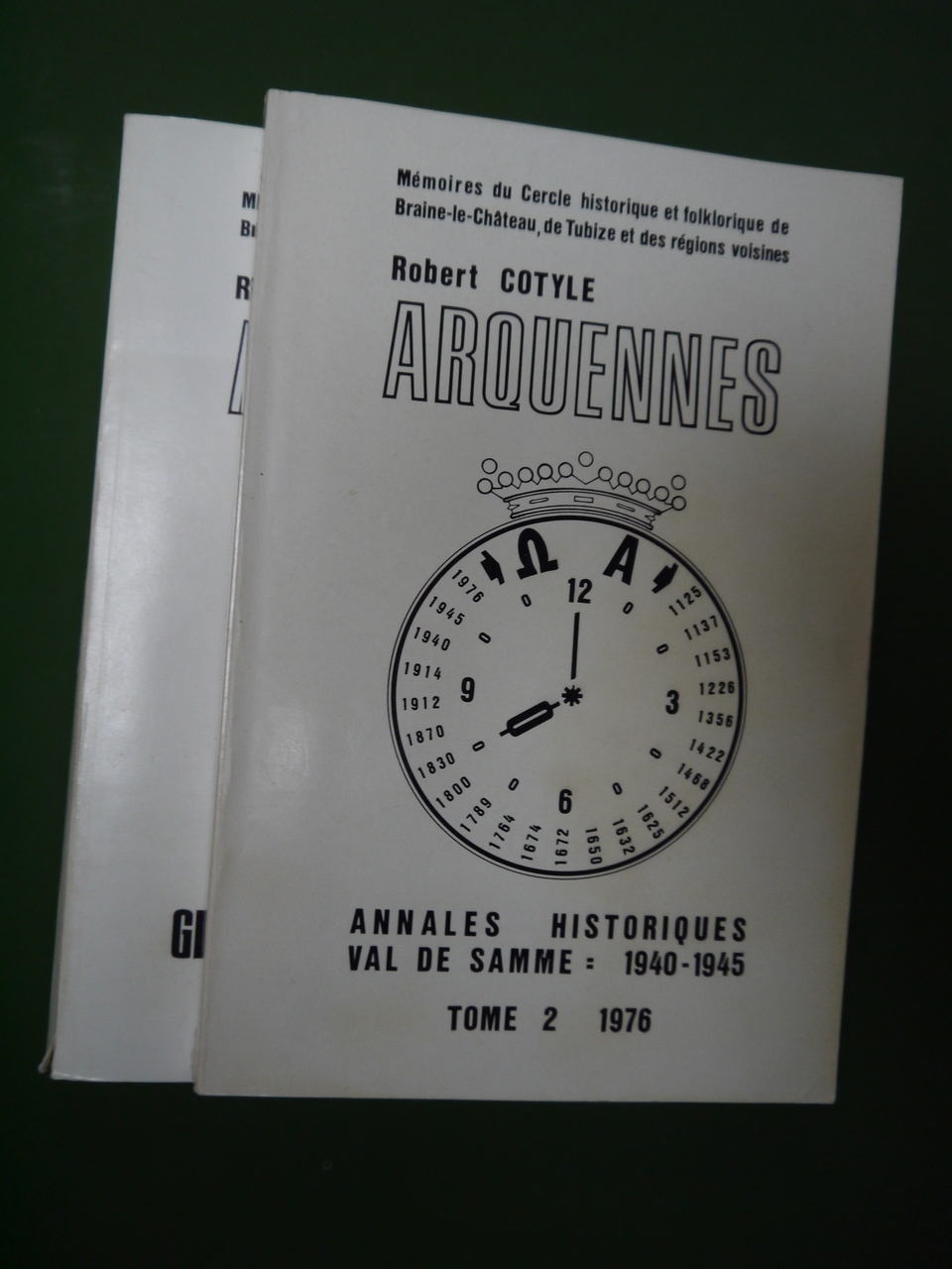 Arquennes se troue à côté de feluy, au sud de Nivelles. Le tome 1 est un glossaire toponymique de 338 pages, le tome II est intitulé « Annales historiques – Val de Samme 1940-1945 ». Paru sous la bannière du Cercle historique et folklorique de Braine-le-château, de Tubize et des régions voisines.