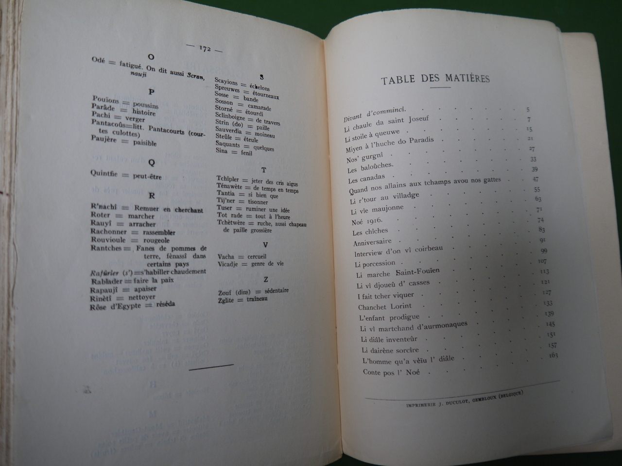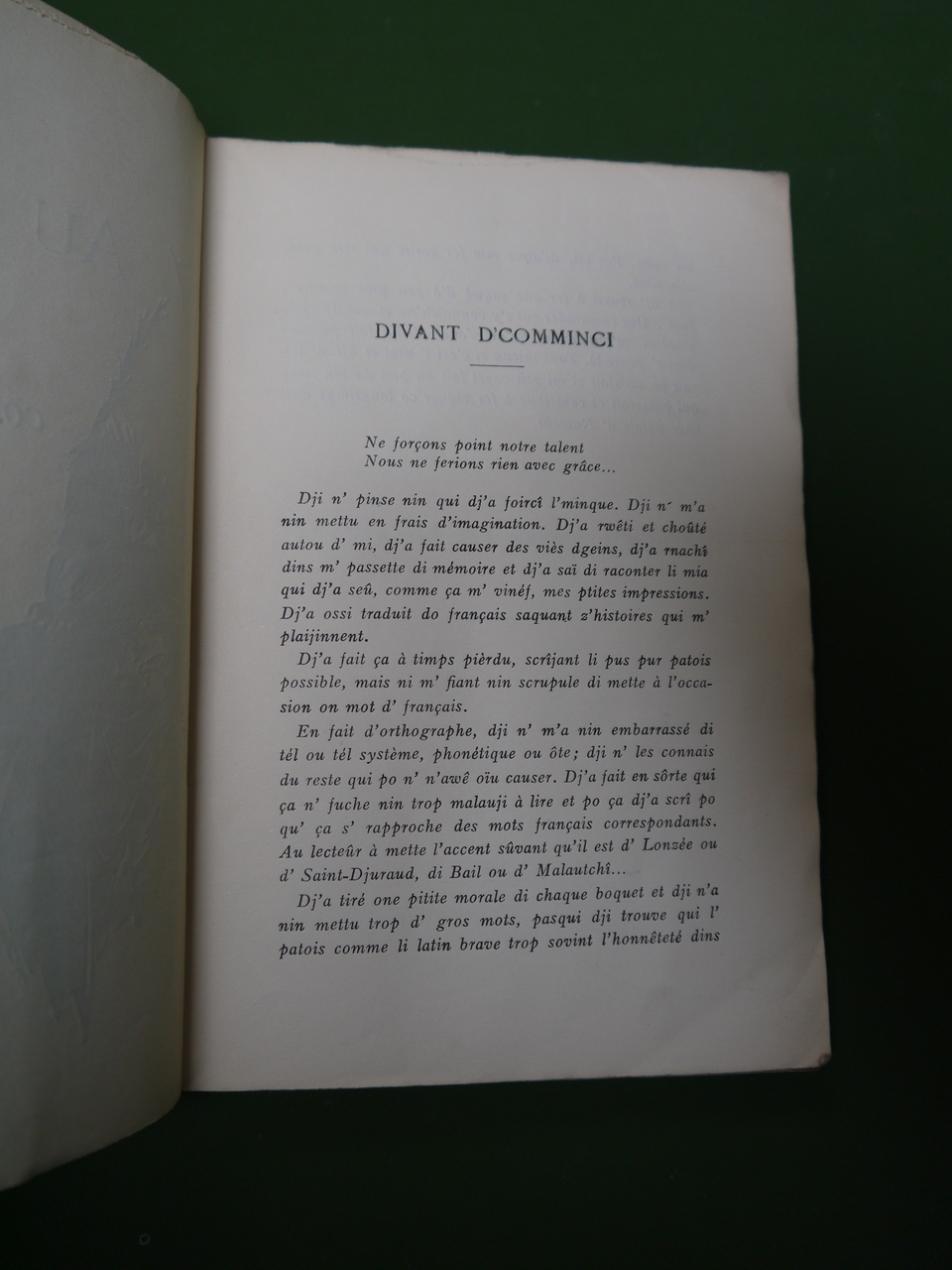 « Contes wallons », en wallon comme il se doit. Biographie de l’auteur ici. Dessins ety bois de A. Daoust.