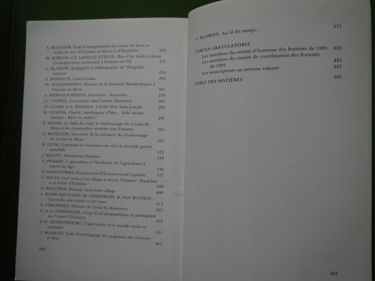 Le sous-titre est un peu plus clair que le titre: « Estinnes, passé, présent, futur ». Estinnes se situe dans la jolie campagne binchoise.