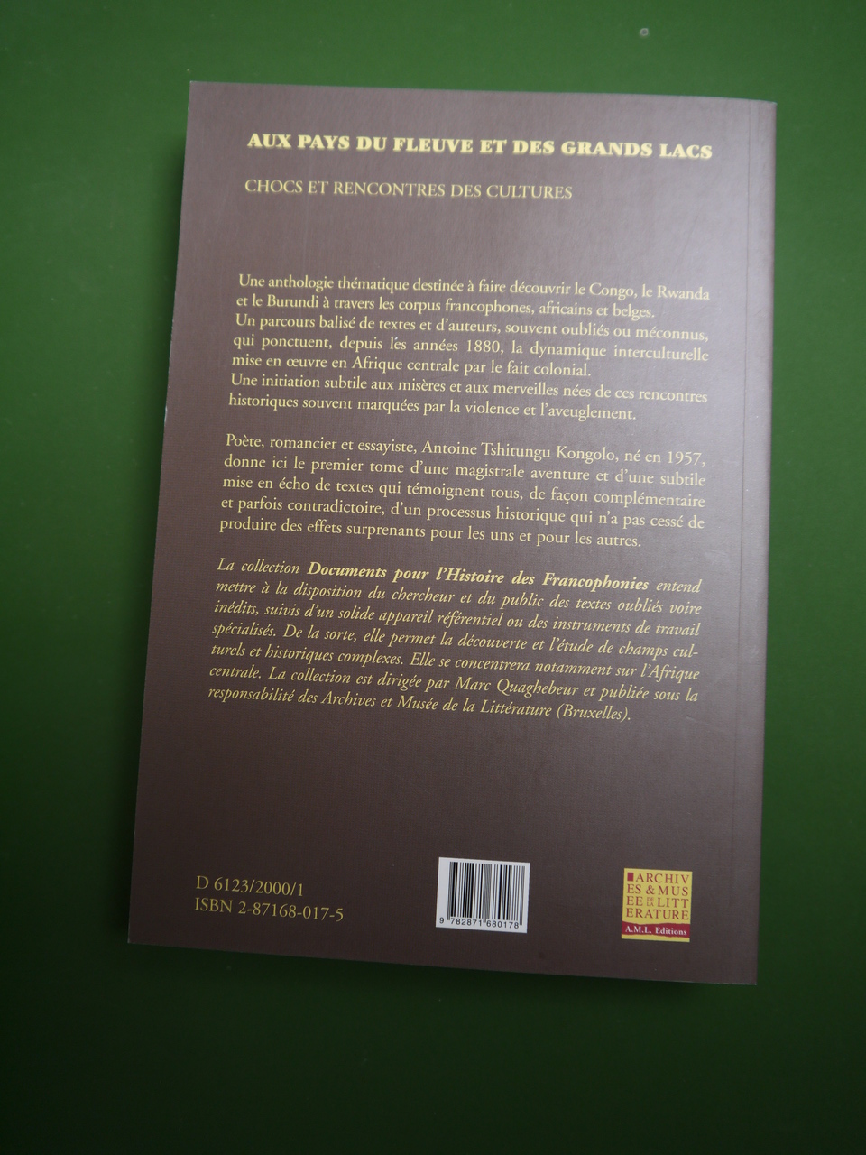 « Chocs et rencontres des cultures de 1885 à nos jours ». Un long voyage à travers les « belles lettres » consacrées au Congo, au Rwanda et au Burundi. On croise évidemment nombre d’auteurs présents sur Belgicana! Exemplaire en état neuf.