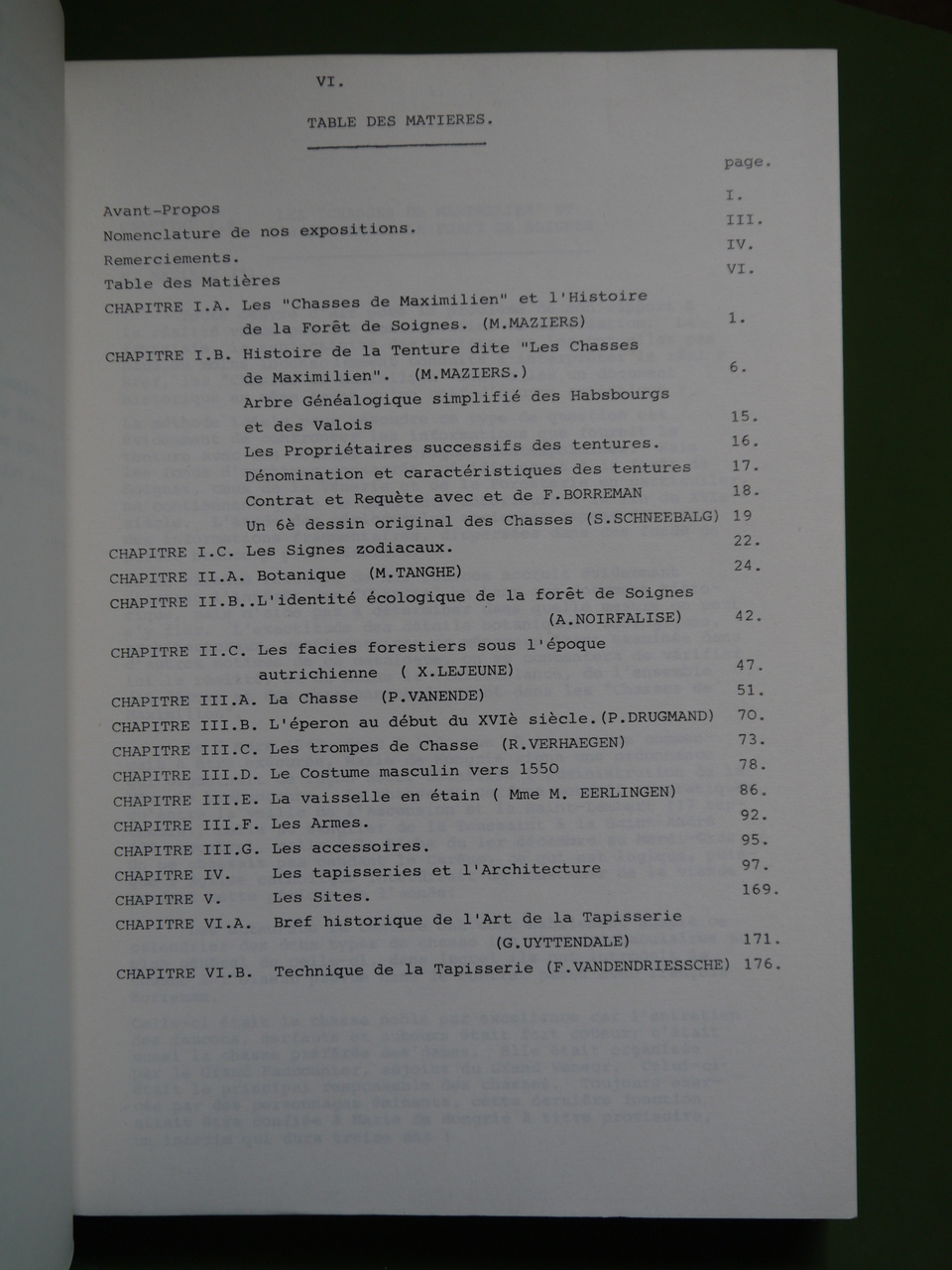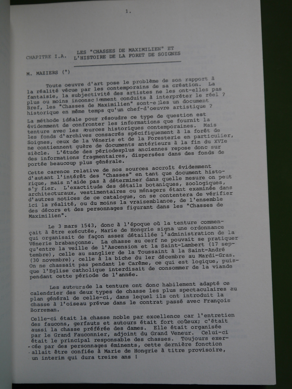 « D’après les tapisseries des chasses dites de Maximilien ». Catalogue d’exposition, 180 pages dactylographiées, accompagné d’une série de reproductions de tapisseries.