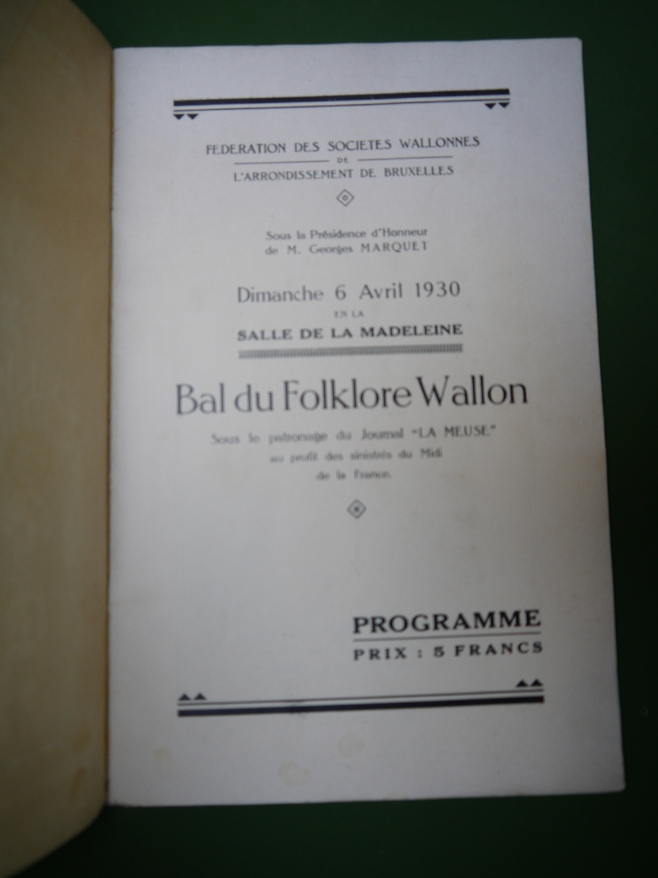 Programme du gala organisé le 6 avril 1930 dans la salle de la Madeleine. Marches, danses et ducasse… au programme.