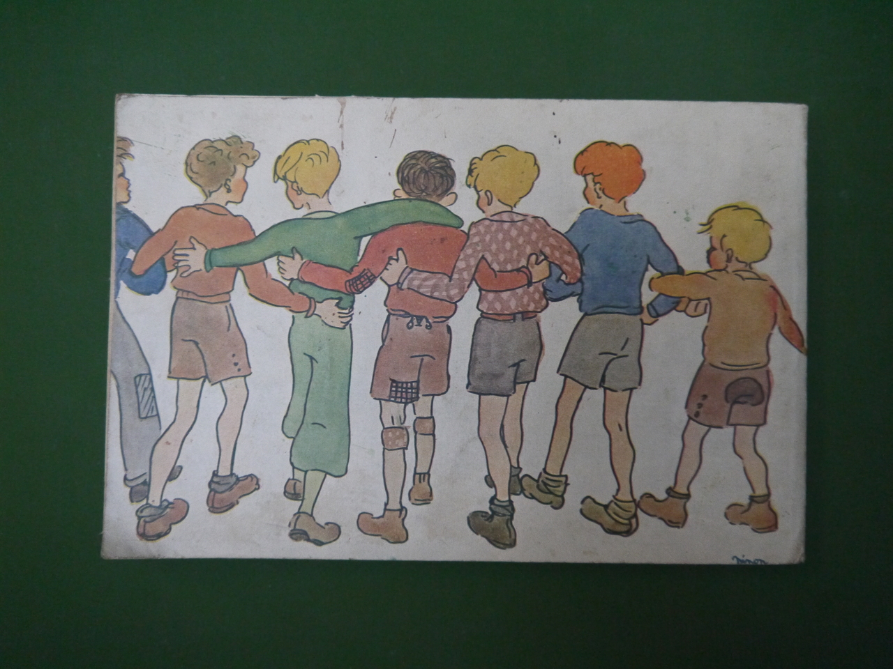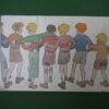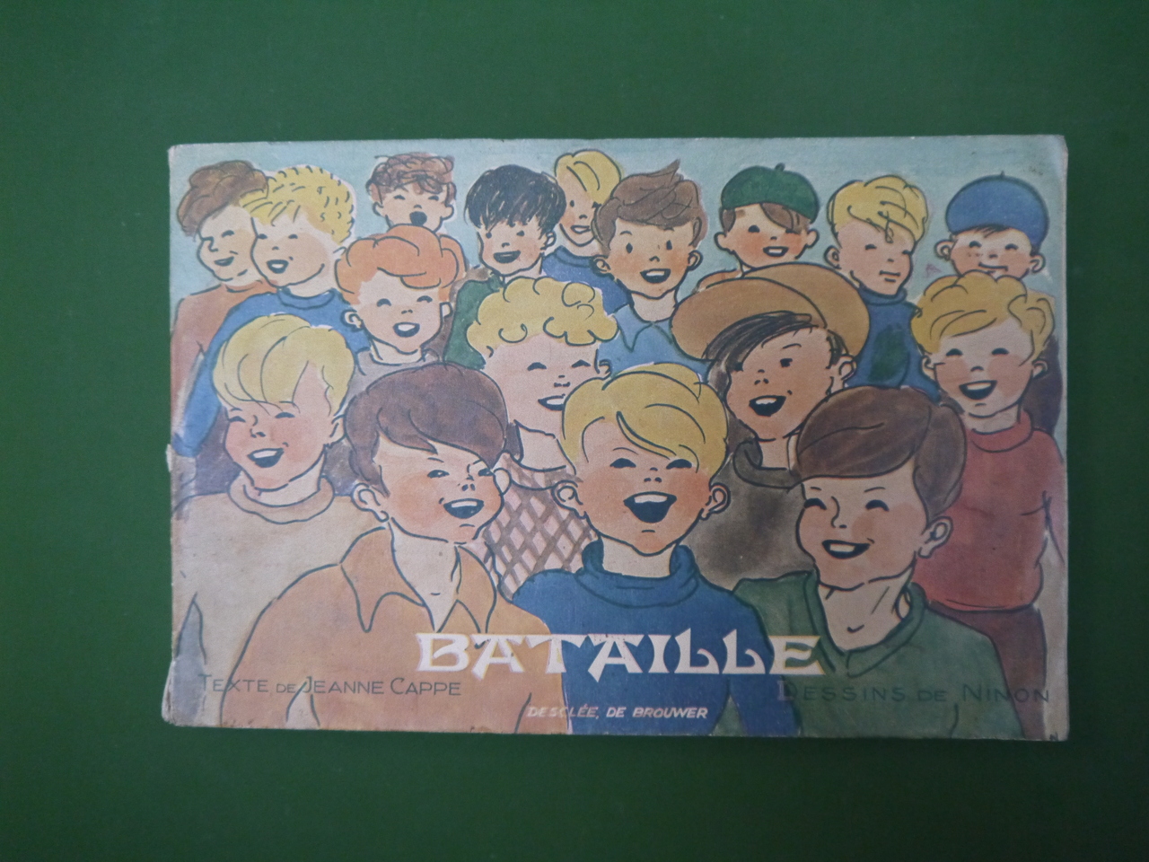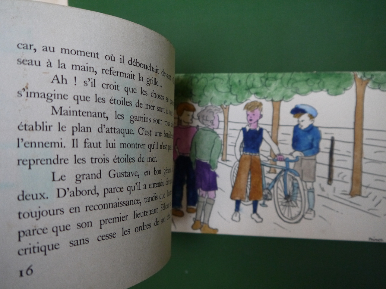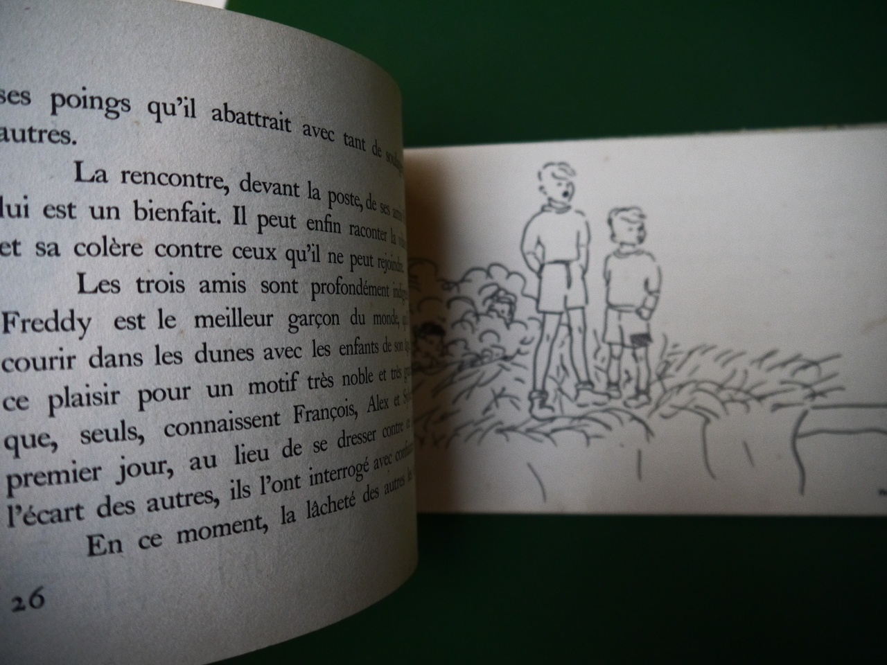 Bataille d’enfants à la frontière franco-belge… Quelques dessins en n/b ont été artistiquement colorisés. Un des dessins originaux en couleurs hors-texte est désolidarisé de l’ensemble.