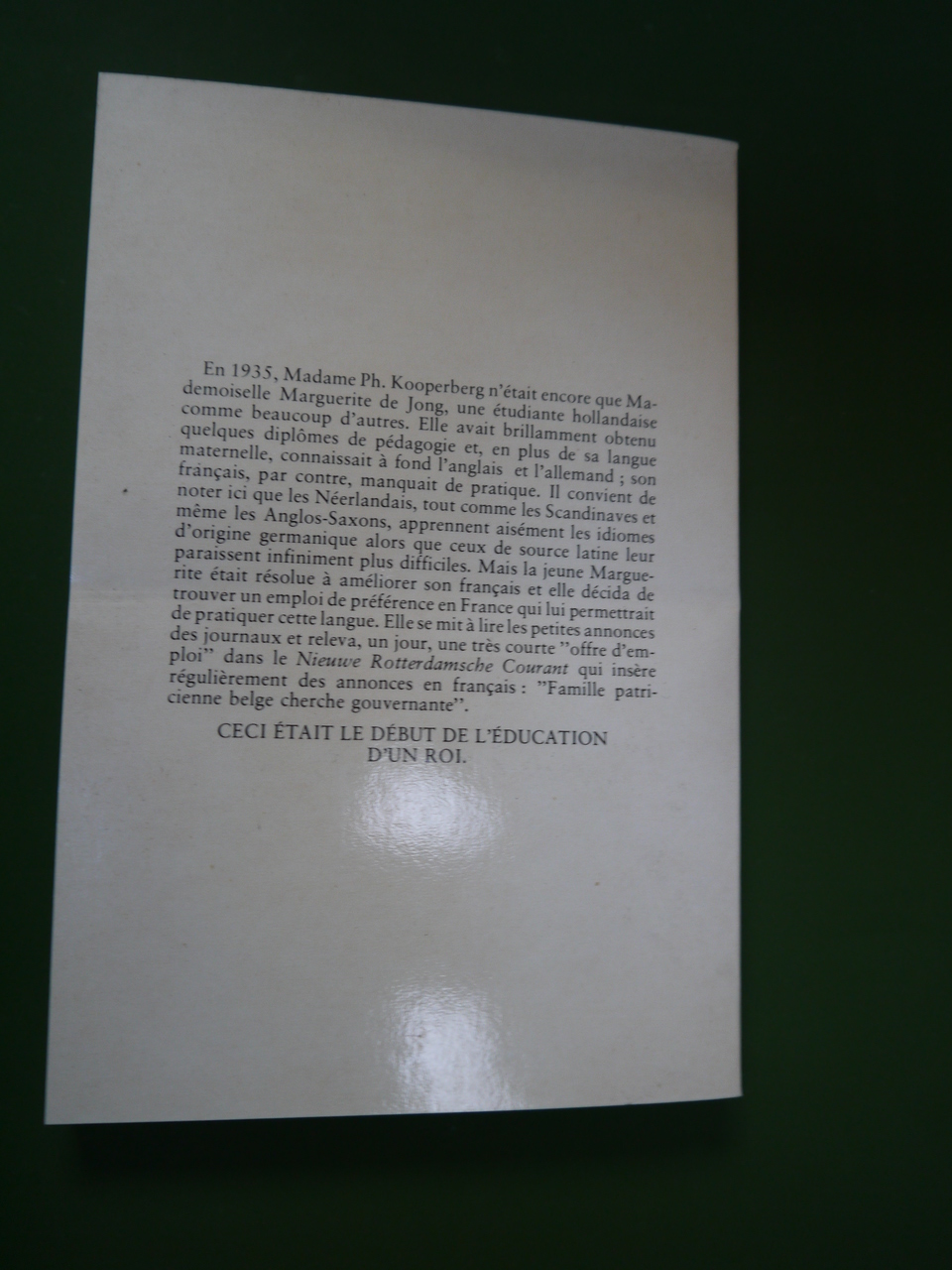 Les souvenirs de Madame Kooperberg-De Jong, qui enseigna le néerlandais au futur roi Baudouin.