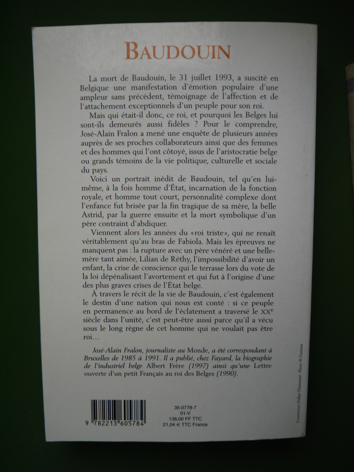 Soyez le premier à laisser votre avis sur “Baudouin l’homme qui ne voulait pas être roi, José-Alain Fralon, Fayard, 2001”