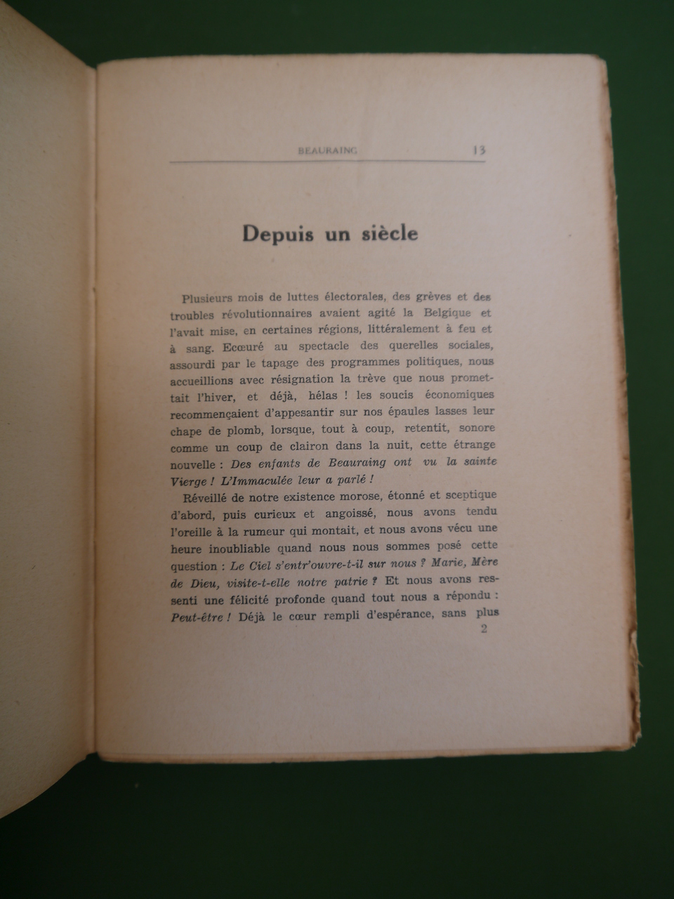 Les « apparitions mariales » qui ont rendu Beauraing célèbre eurent lieu en 1932… L’auteur évoque longuement d’autres apparitions, comme Fatima…