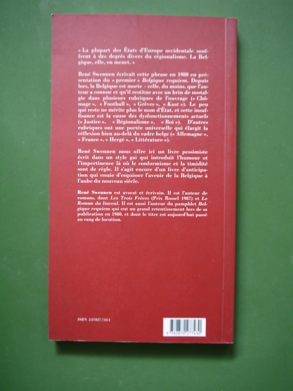 Suite du « Belgique requiem » paru en 1980. L’auteur a publié notamment chez Gallimard.