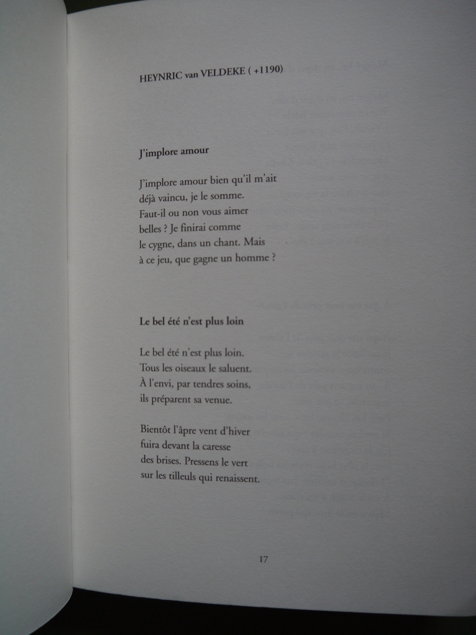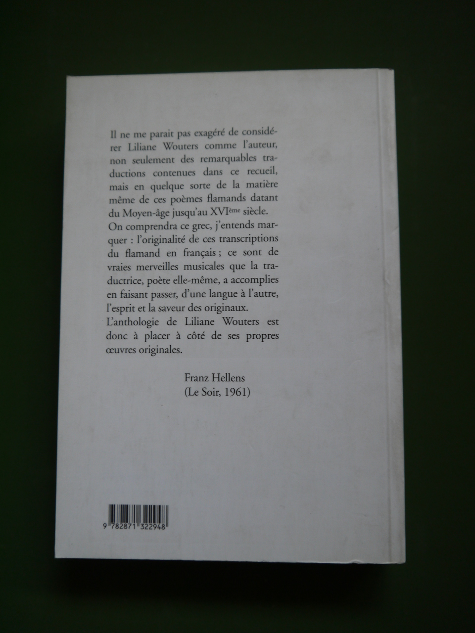 Une anthologie de poésie flamande, du 12e au 16e siècles. Une première édition avait paru chez Seghers.