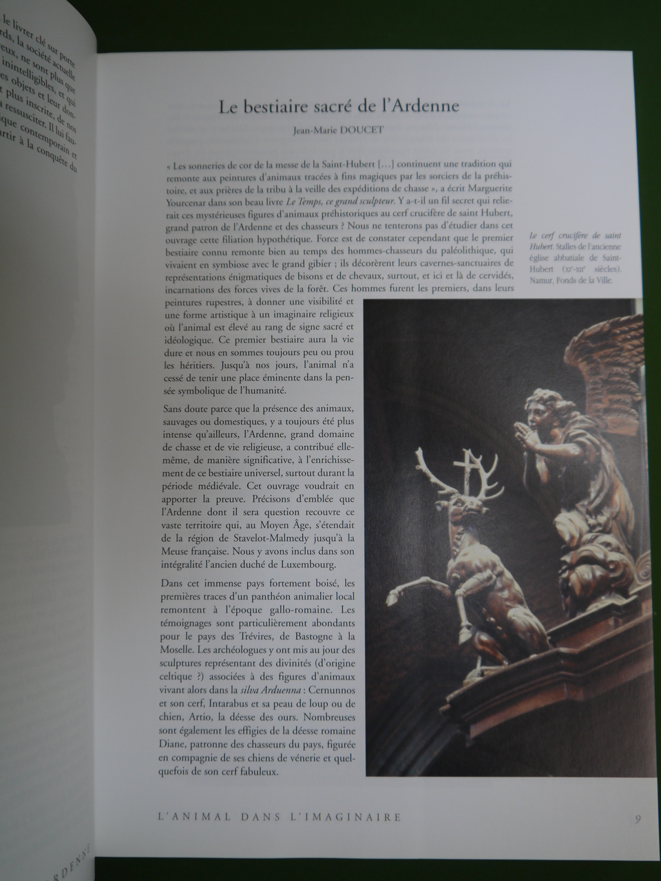 « Les animaux dans l’imaginaire, des gallo-romains à nos jours », 318 pages! « Du culte du dieu gallo-romain Intarabus à la Foire de Libramont, en passant par les légendes des saints Hubert et Remacle… »