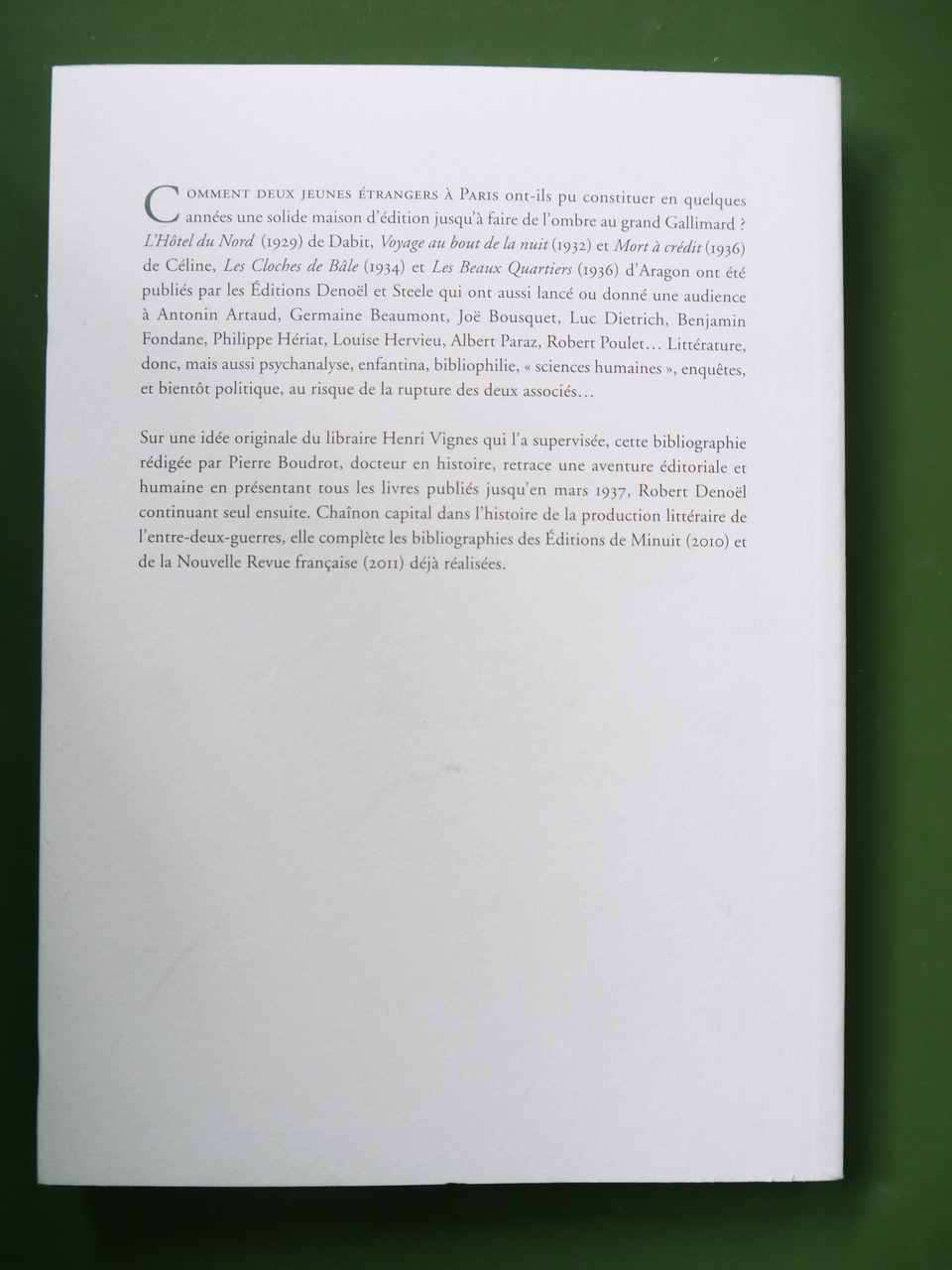 Bibliographie des éditions Denoël et Steele, Pierre Boudrot, Henri Vignes/éditions des Cendres, 2014