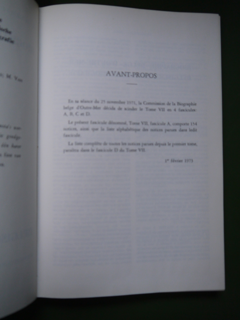 Le fascicule A du tome 7 propose 154 notices biographiques, parmi lesquelles celle de Tshombé. Le tome 7 compte 4 fascicules au total, A,B,C et D.