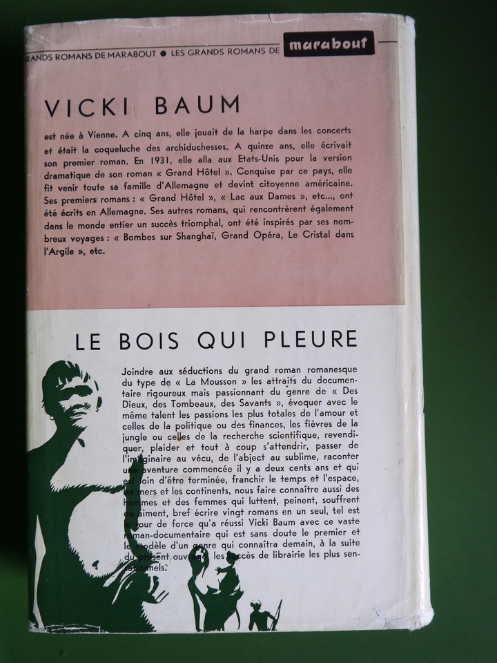 Le bois qui pleure, Vicki Baum, éditions Gérard & Co, 1956