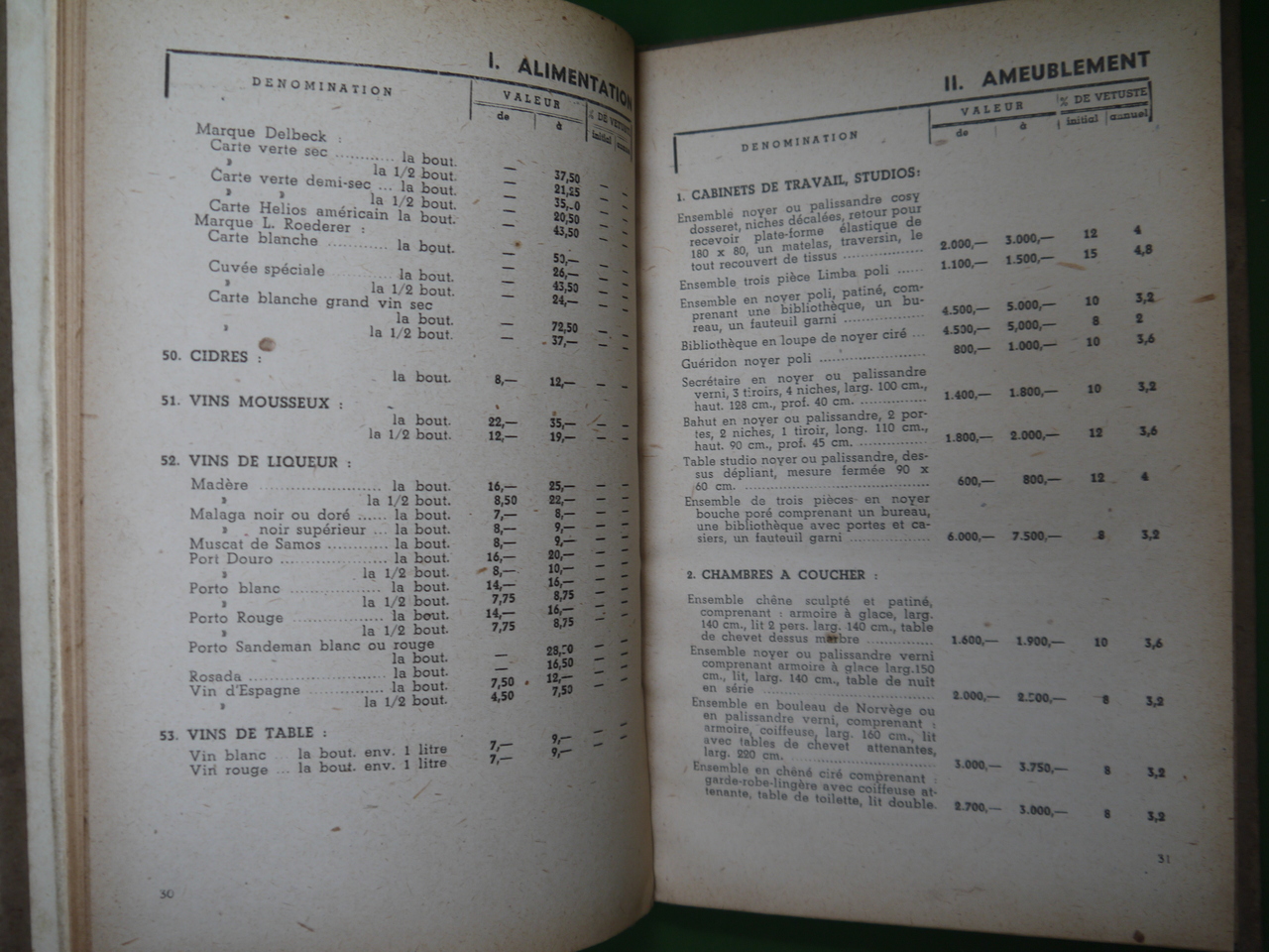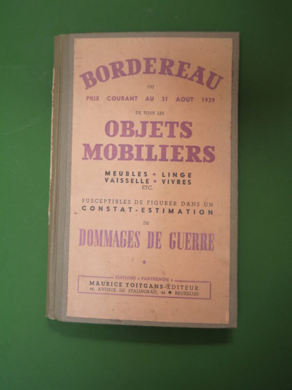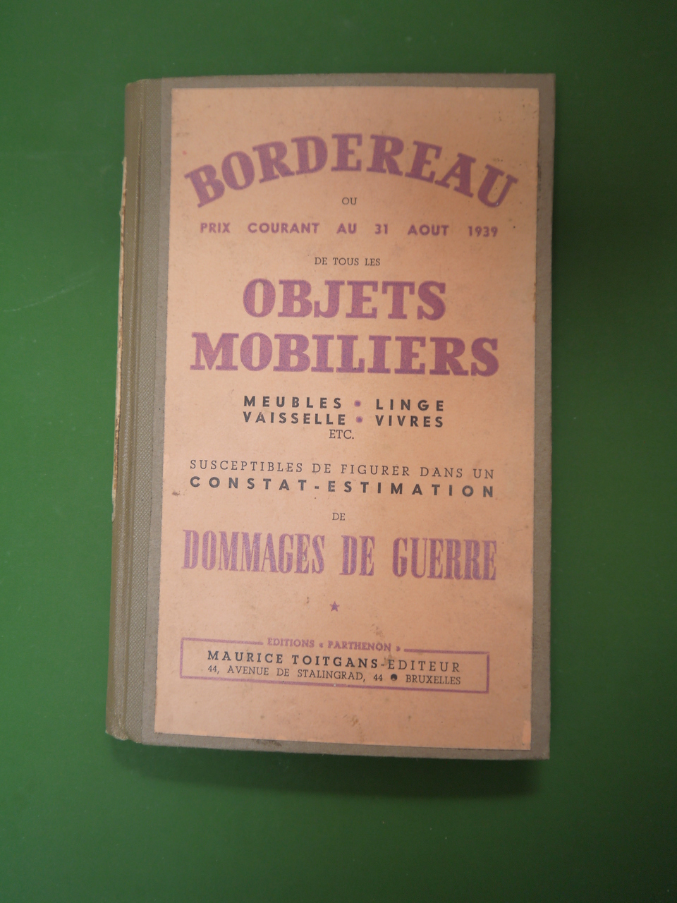 » (…) Meubles – linge – vaisselle – vivres – etc. susceptible de figurer dans un constat — estimation de dommages de guerre ». Une mention manuscrite indique « novembre 1945 ». Un véritable inventaire à la Prévert…