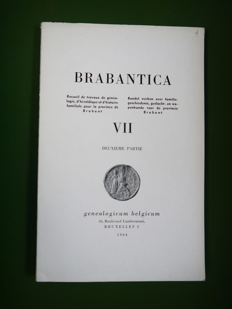“Recueil de travaux de généalogie, d’héraldique et d’histoire familiale pour la province de Brabant” en version unilingue FR. Tirage de 500 exemplaires seulement! Pagination de 683 à 824.