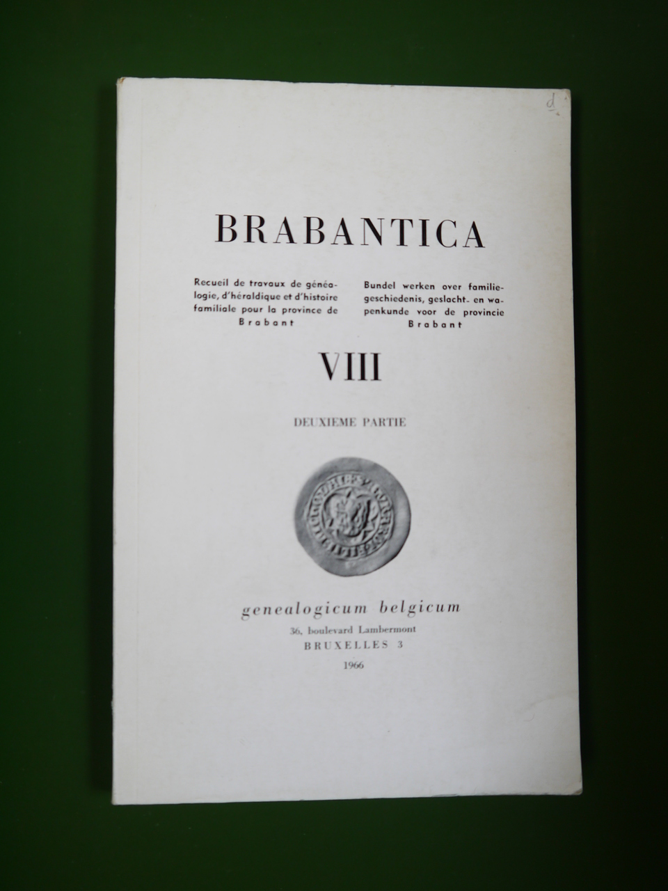 “Recueil de travaux de généalogie, d’héraldique et d’histoire familiale pour la province de Brabant” en version unilingue FR. Tirage de 500 exemplaires seulement! Pagination de 821 à 968.