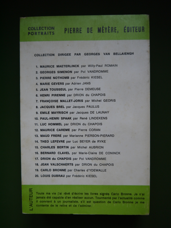 19eme volume de la série « Portraits » d’écrivains belges.