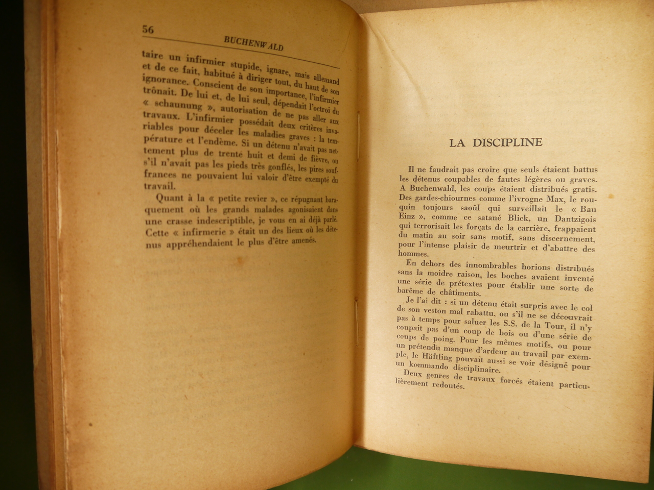 Arrêté en mars 1944, l’auteur a passé un an dans le camp de Buchenwald. Fut-il élu au parlement belge fin 1944 comme certains sites le suggèrent? Le camp de Buchenwald ne fut pourtant pas libéré avant le 11 avril 1945. Exemplaire très défraîchi.
