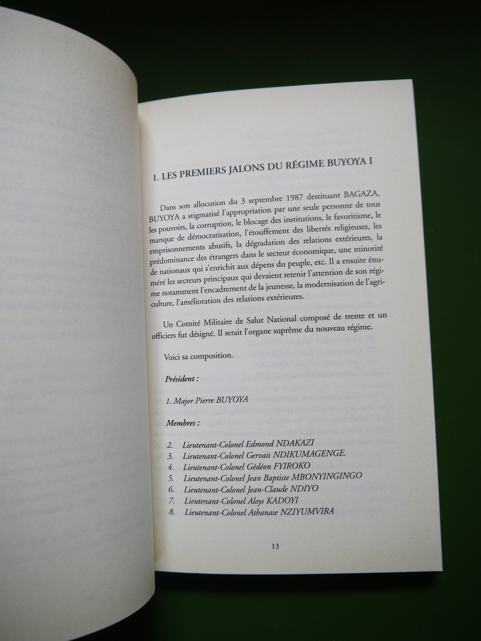Le sous-titre « Buyoya I – Ndadaye 1987-1993 » rend hommage au major Buyoya, pendant 6 ans chef d’état du Burundi.