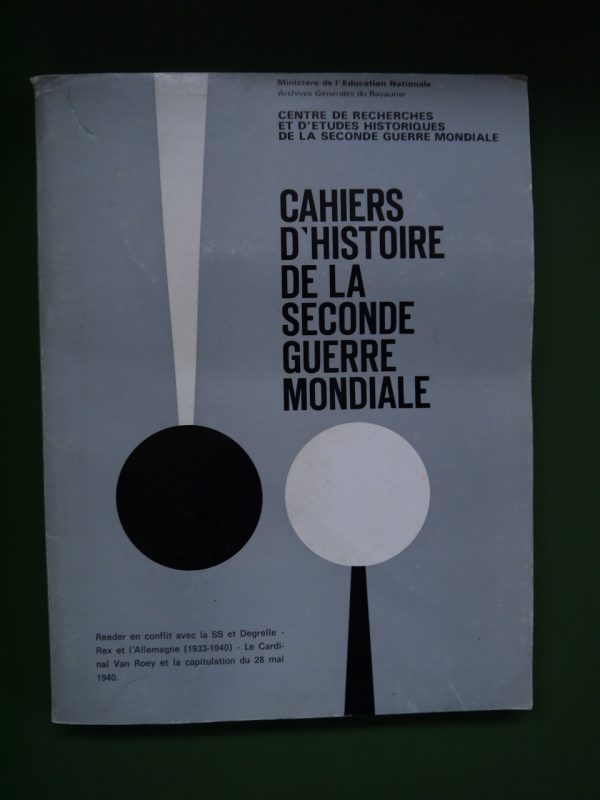 Trois contributions dans ce numéro des cahiers, dont une sur la lettre pastorale du cardinal van Roey en mai 1940. Exemplaire en état moyen.