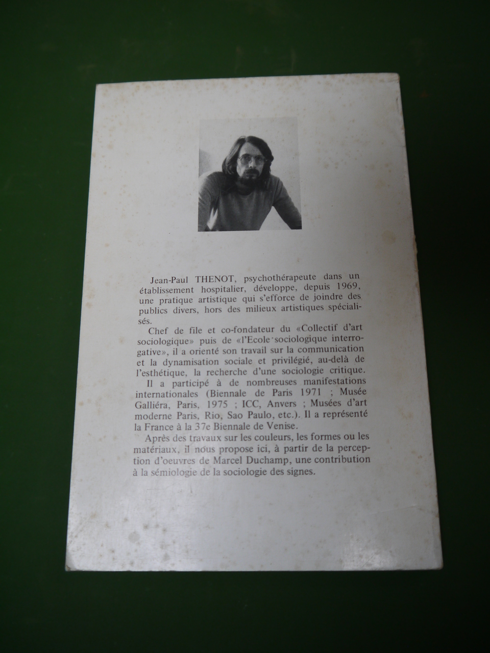 « Visualisation d’une intervention sociologique réalisée en 1974 » autour de l’oeuvre de Duchamp. Réédité en 2006, toujours chez Yellow now.