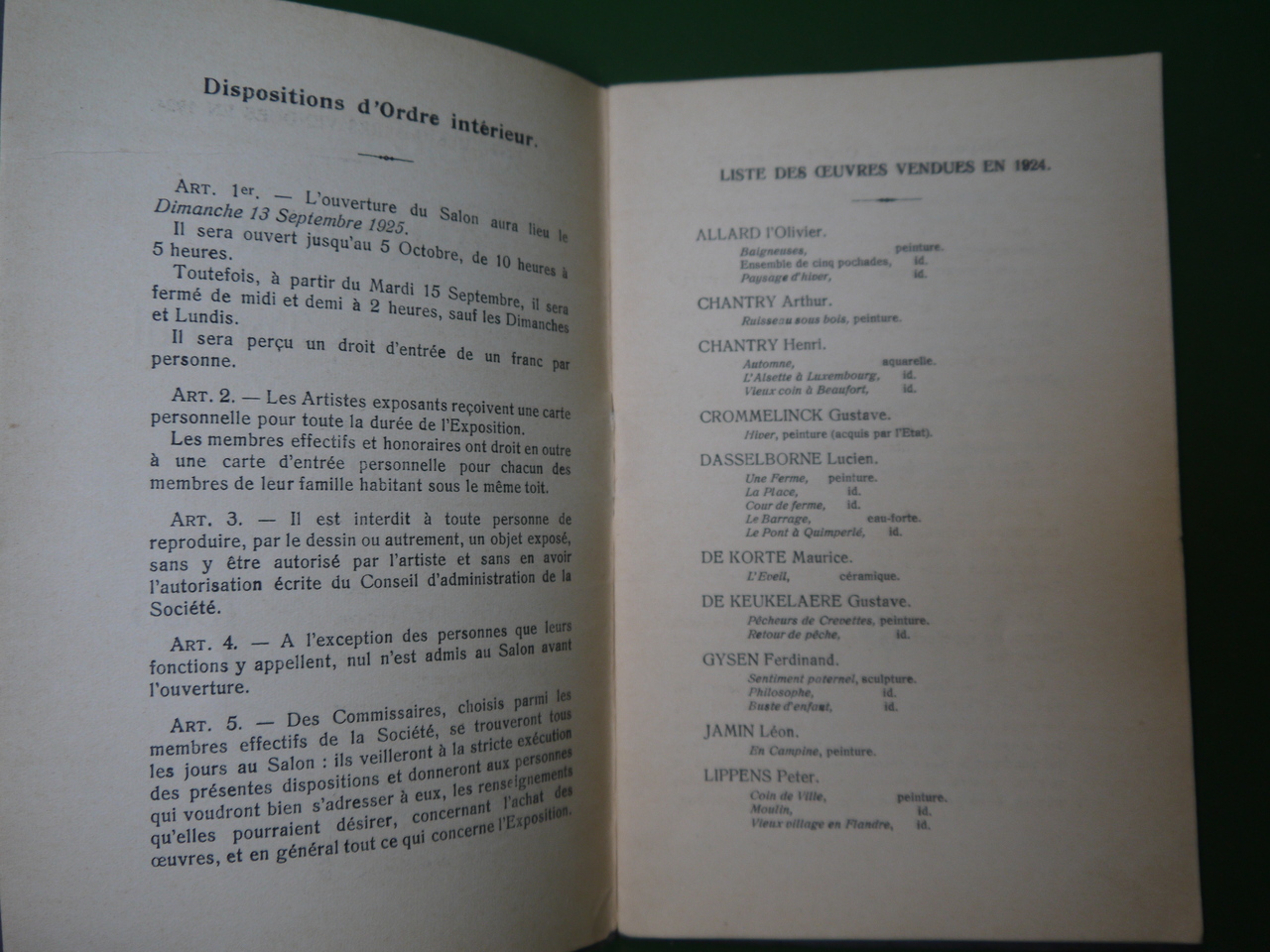 Catalogue des oeuvres exposées. Parmi les artistes: Grard, Marie Howet, Allard l’Ollivier…
