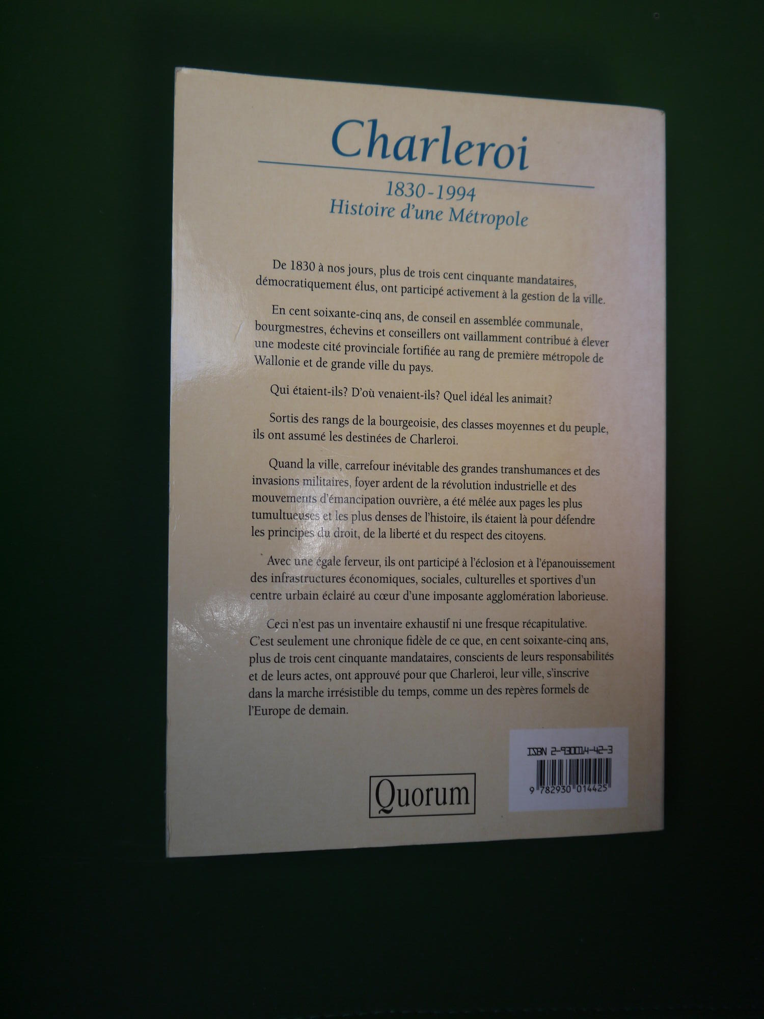 Charleroi 1830-1994 histoire d’une métropole, Pierre-Jean Schaeffer, Quorum, 1995