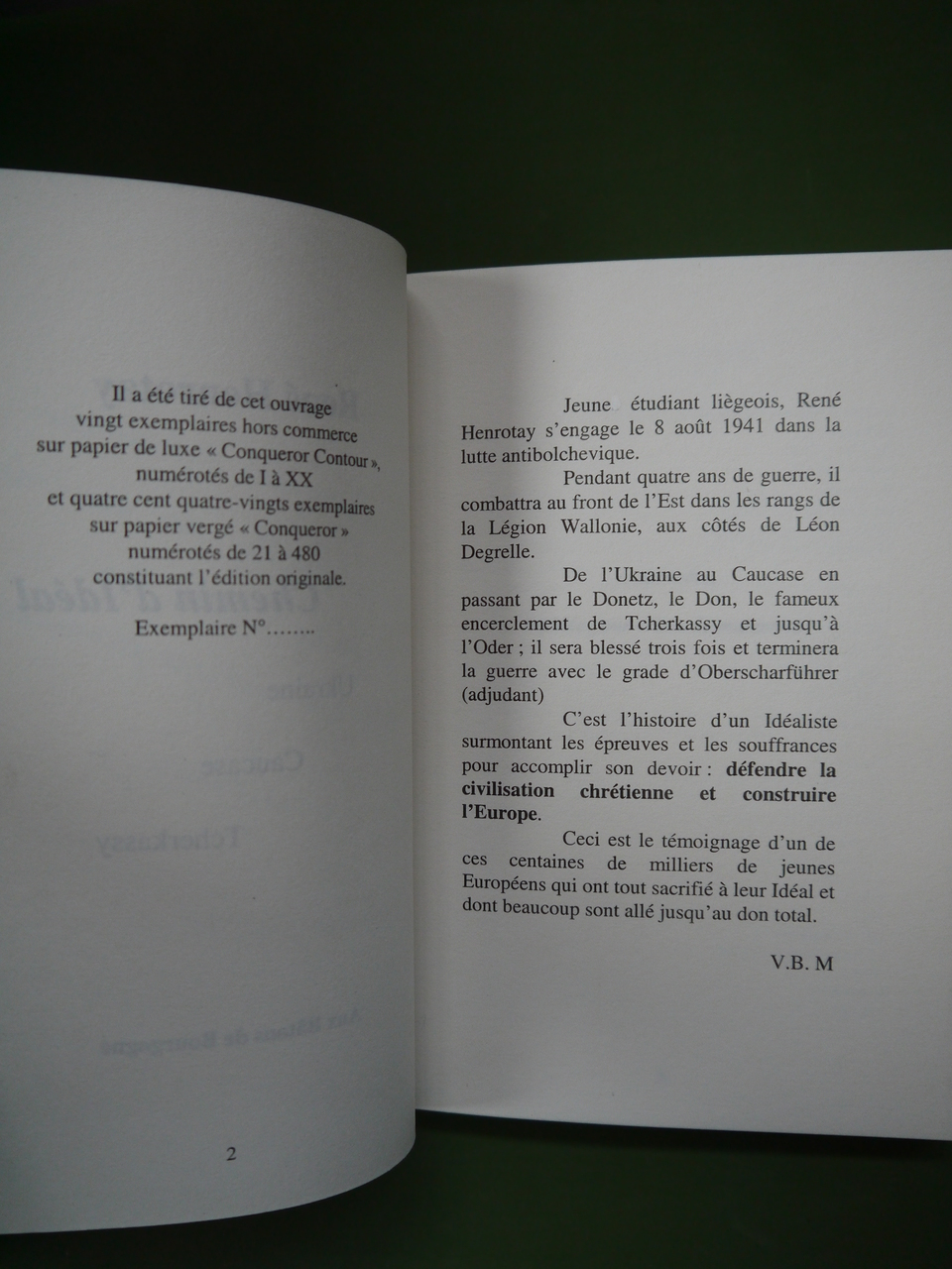 Les souvenirs d’un ancien de la légion Wallonie. Tirage de 500 exemplaires.