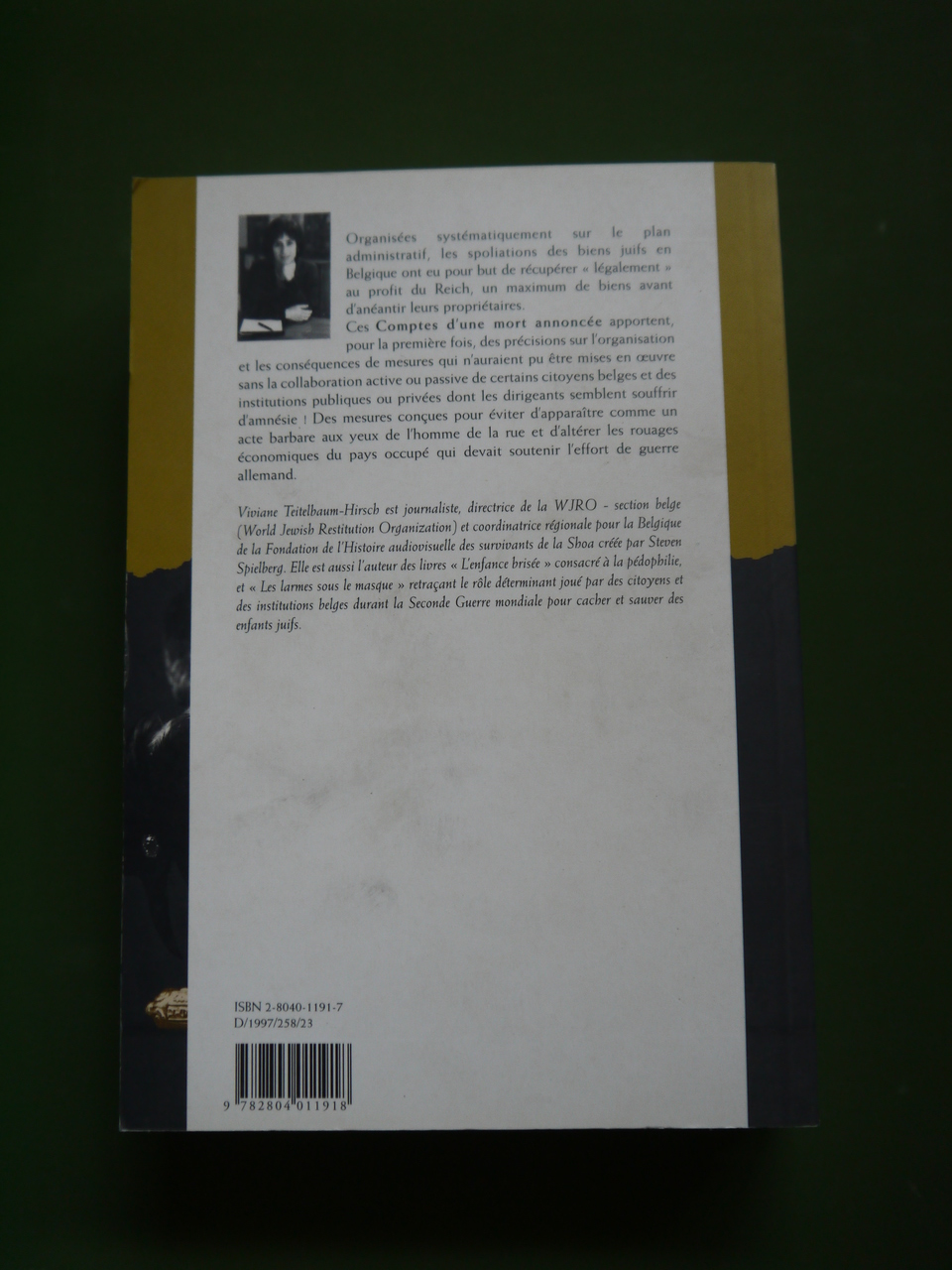 Sous-titre: « les spoliations des Juifs en Belgique ».
