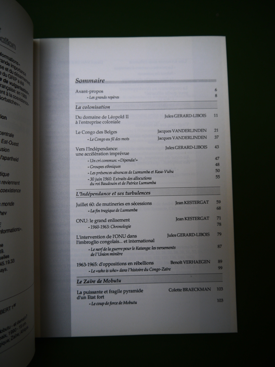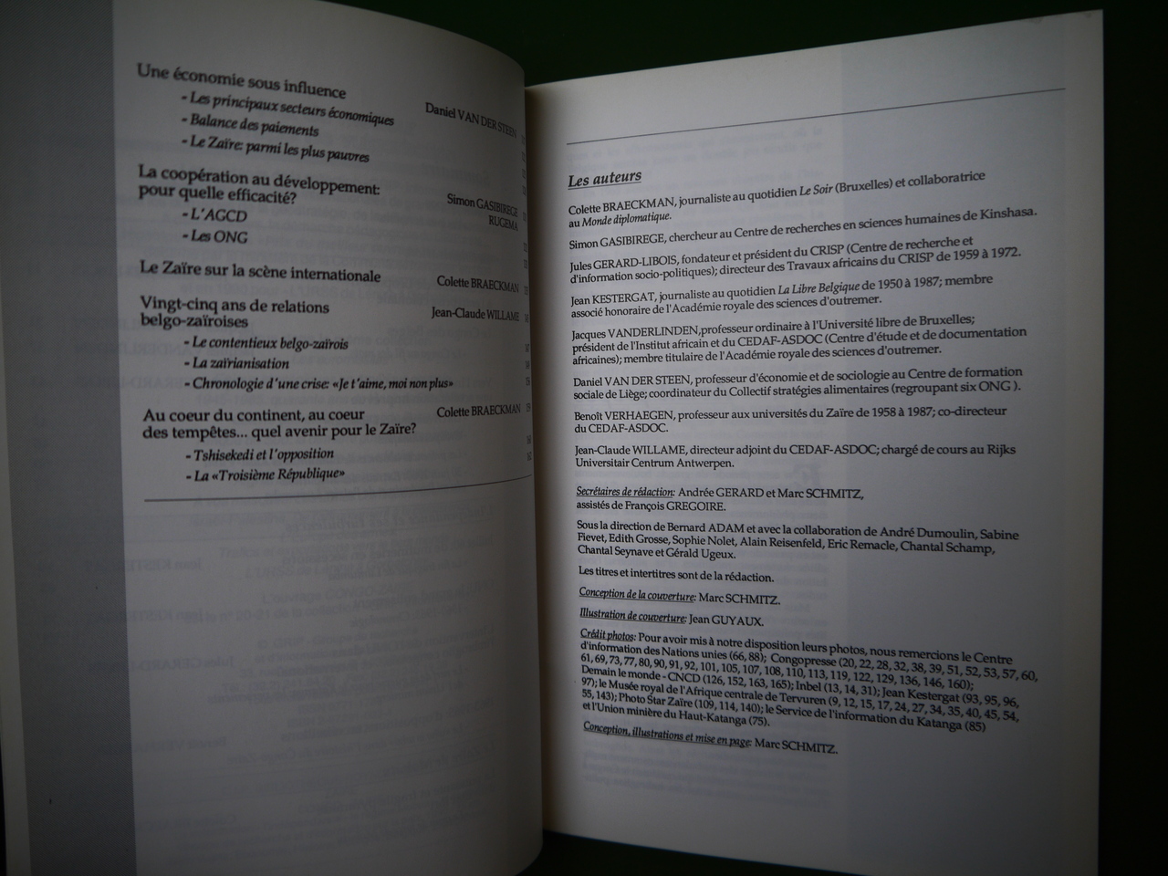 Contributions de Colette Braeckman, Jules Gérard-Libois, Benoît Verhaegen, Jean Kestergat…