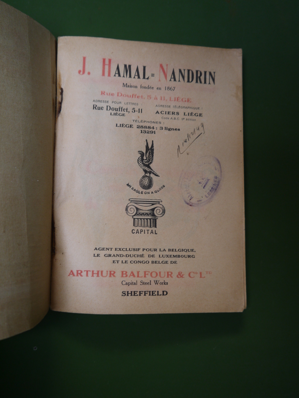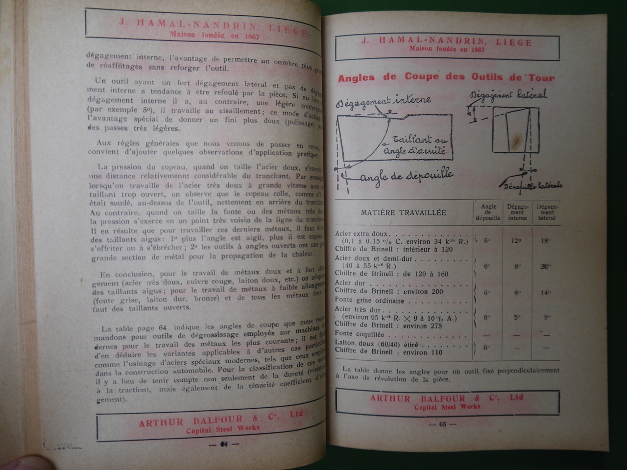 Livret technico-publicitaire pour l’entreprise liégeoise Hamal-Nandrin, agent exclusif de l’entreprise anglaise Arthur Balfour, sise à Sheffield.