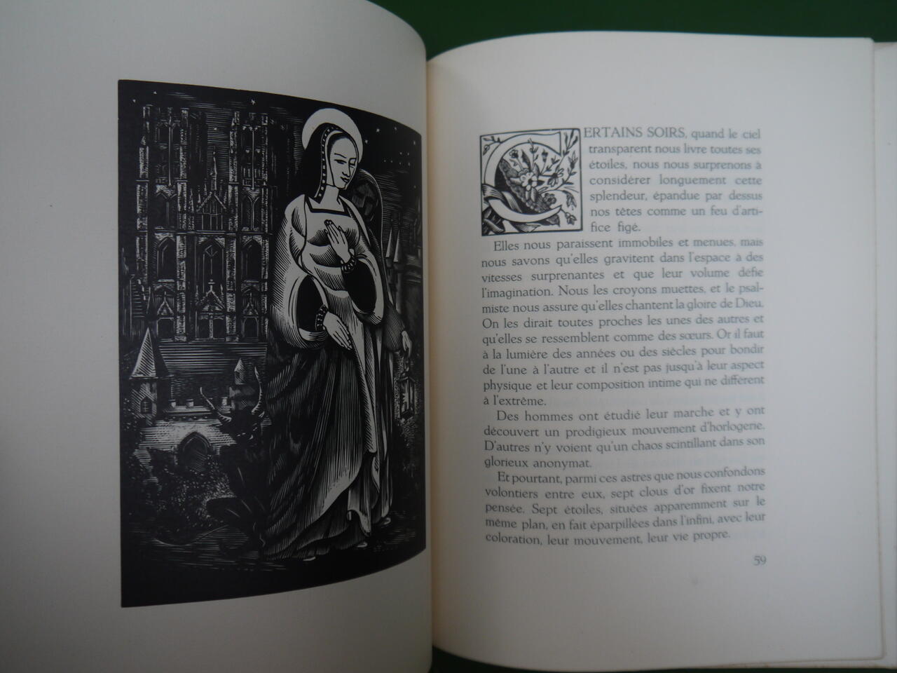 Saint Joseph, Saint Pierre, saint François d’Assise, Saint Thomas More, Sainte Gudule, Saint Guidon, Notre Dame de la solitude. Bois gravés de Maurice Brocas. Tirage de 525 exemplaires.